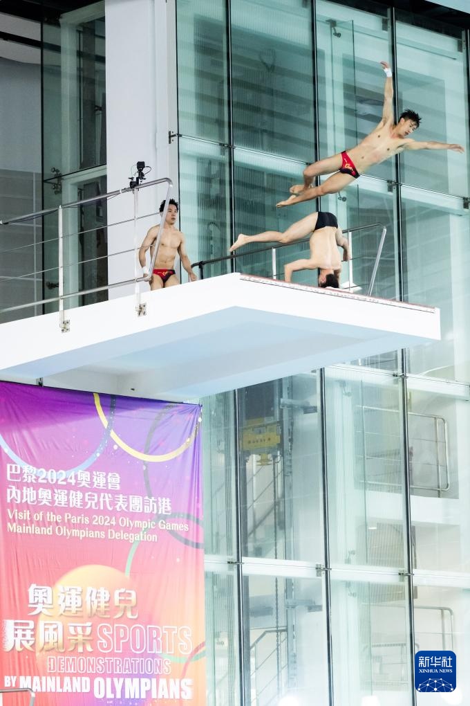8月31日,跳水隊選手進行表演。新華社記者 盧炳輝 攝