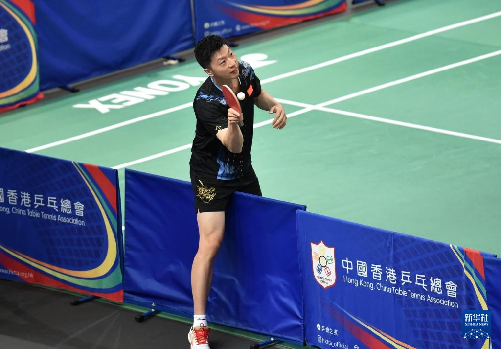 8月31日,乒乓球選手馬龍進行表演。新華社記者 盧炳輝 攝