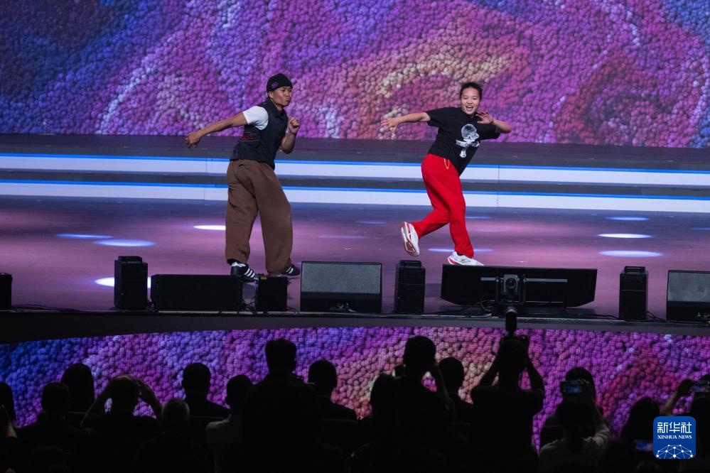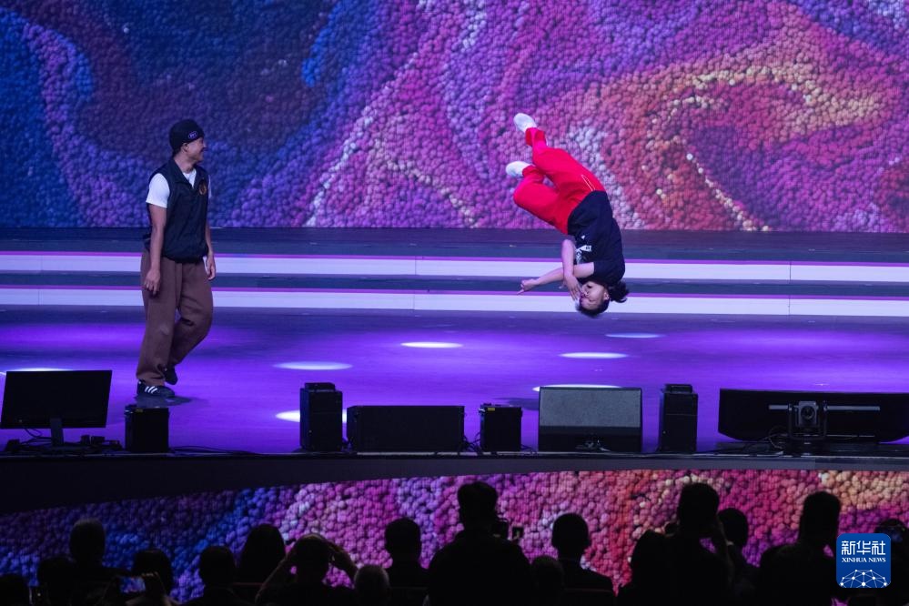圖為霹靂舞運動員劉清漪(右)與澳門運動員同場競技。