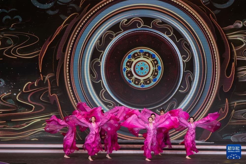 圖為花樣游泳運動員表演舞蹈《折柳》 。