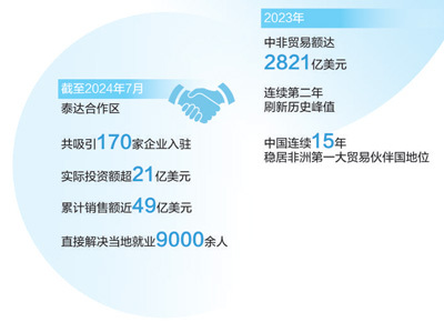截至今年7月底,泰達(dá)合作區(qū)共吸引170家企業(yè)入駐,實(shí)際投資額超21億美元,累計(jì)銷售額近49億美元,繳納稅費(fèi)超2.7億美元。
