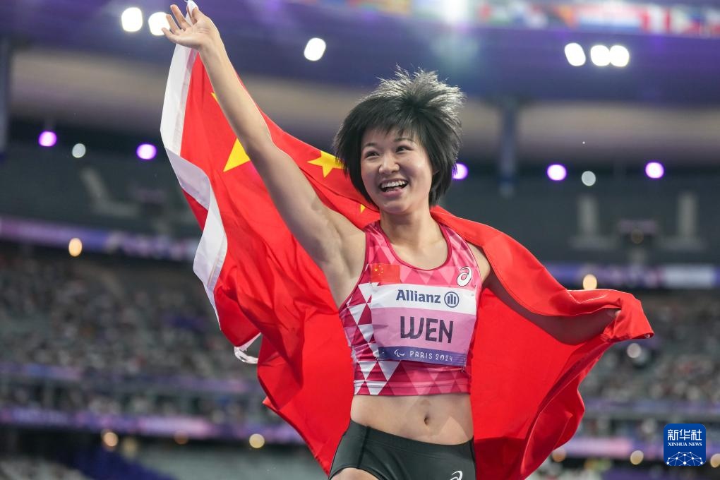 當日,在巴黎殘奧會田徑女子跳遠T37級決賽中,中國選手文曉燕以5.44米的成績獲得冠軍,并打破殘奧會紀錄。