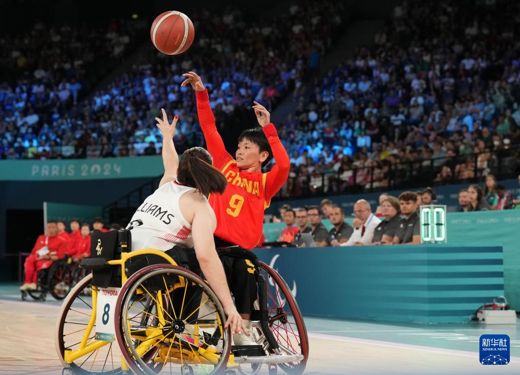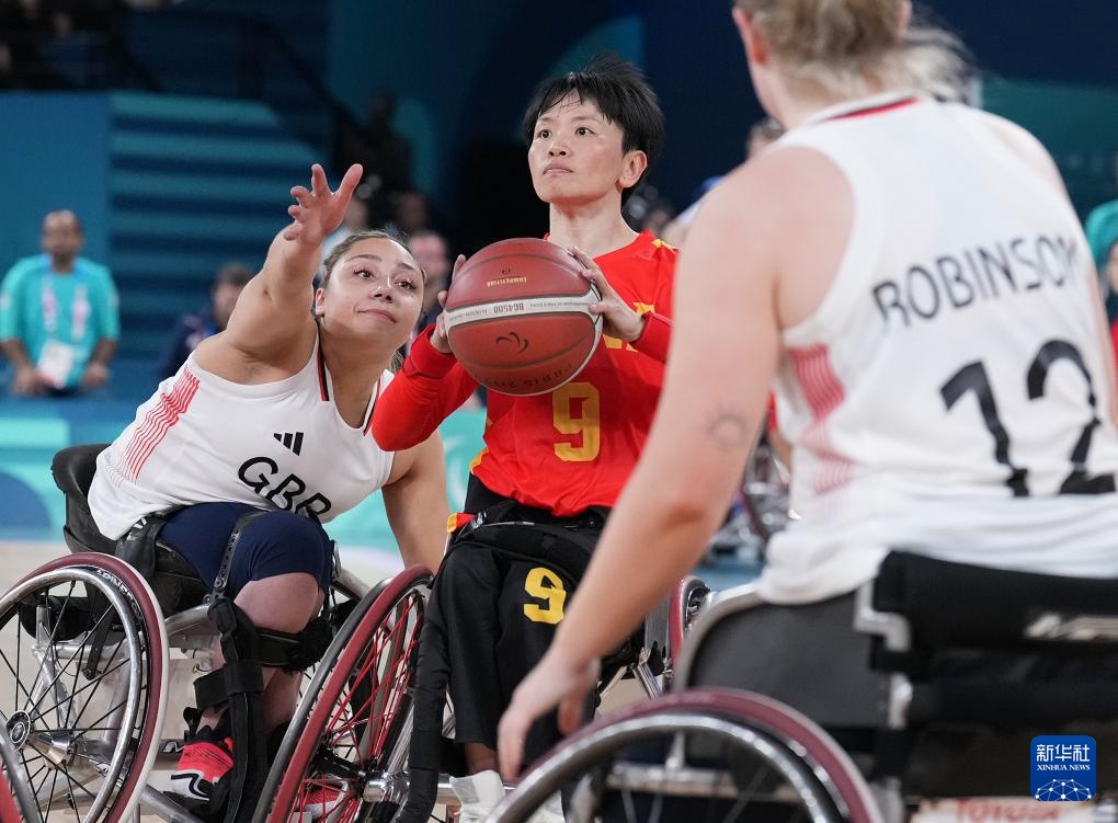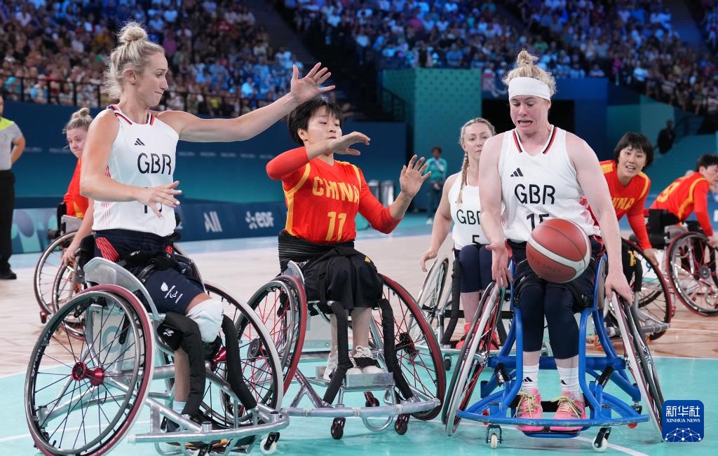 當日,在巴黎殘奧會輪椅籃球女子小組賽A組第三場比賽中,中國隊以62比47戰勝英國隊。