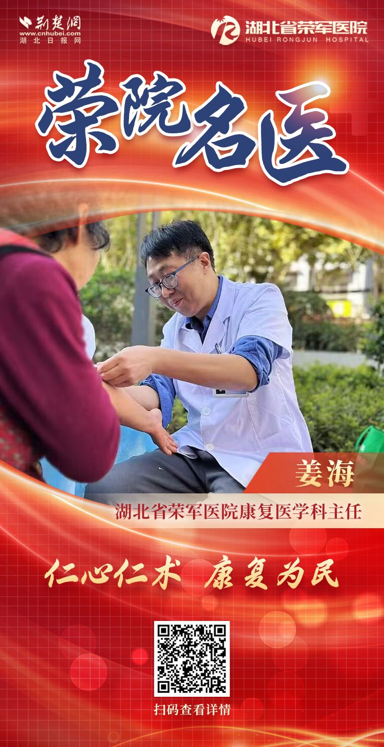 省榮軍醫院是湖北最早接觸康復醫學的醫院之一。1987年,世界衛生組織在中國舉辦康復培訓班,省榮軍醫院則是培訓班的截癱康復臨床實訓基地。姜海入行后,在康復醫學科陳家權、張翠芳兩位老主任的影響下,堅定的走上了中醫與康復醫學的融合之路。