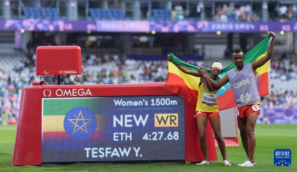 當日,在巴黎殘奧會田徑女子1500米T11級決賽中,埃塞俄比亞選手特斯福以4分27秒68的成績獲得冠軍并打破世界紀錄。中國選手何珊珊以4分32秒82的成績獲得亞軍。