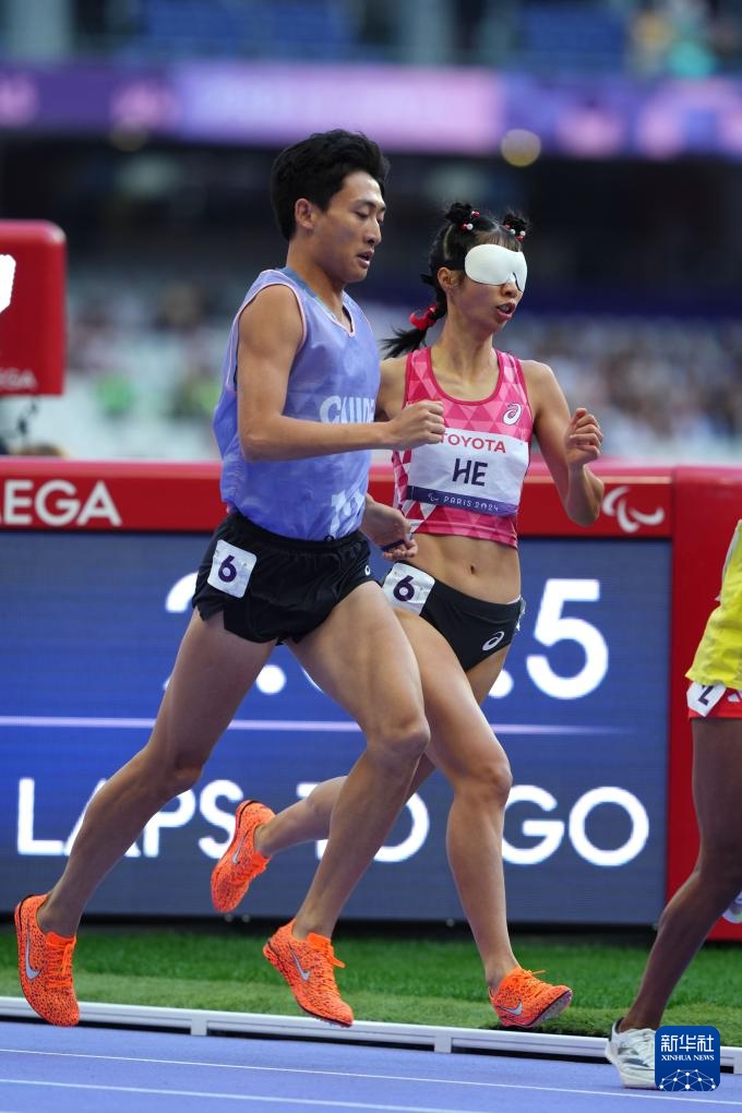 9月2日,中國選手何珊珊(右)與領跑員游俊杰在比賽中。