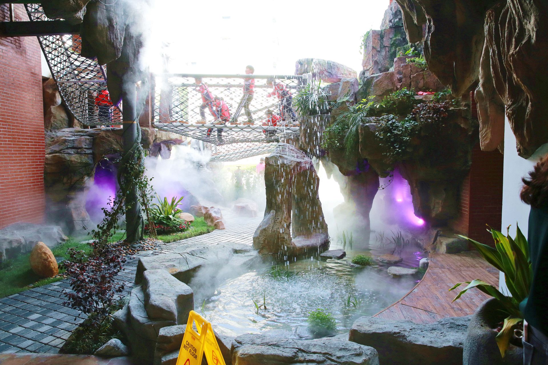 “哇!我又可以在西游記樂園玩啦。”近期,黑神話悟空火爆全球,孫悟空早已成為每一位三幼娃們心中的偶像,貫通教學樓天井空間打造的西游記樂園,是三幼娃最愛的游戲天地。從鐵索橋到三星洞,從御馬澗到蟠桃園,孩子們在傳統文化情境中探險挑戰,點燃文化自信,種下中國心的種子。迎新大廳里,奧運展板引人入勝,省三幼以“奧運”主題為活教材,在開學季向幼兒傳遞中國健兒頑強拼搏的體育精神,“體教融合”再燃中國情,根植中國紅。