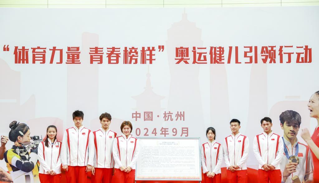 新華社杭州9月3日電(記者夏亮)3日,巴黎奧運會冠軍潘展樂、黃雨婷、徐嘉余、鄭思維/黃雅瓊、季博文,以及倫敦奧運會冠軍葉詩文等浙江奧運健兒在杭州發(fā)出倡議:傳遞體育力量,爭做青春榜樣。