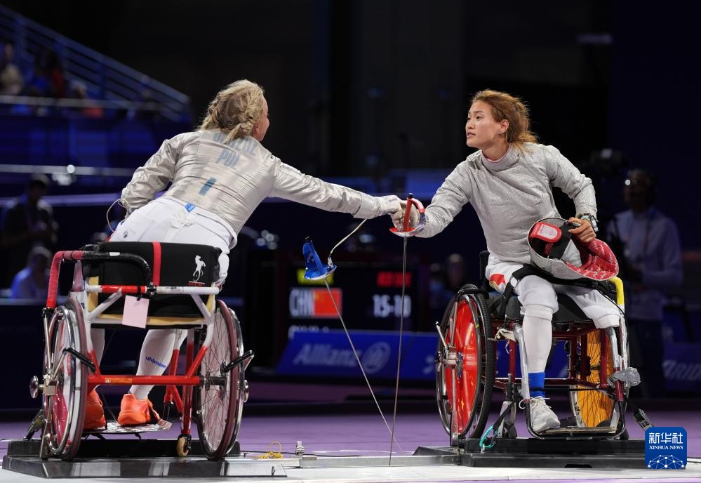 當(dāng)日,在巴黎殘奧會(huì)女子佩劍個(gè)人A級(jí)決賽中,中國選手辜海燕15比10戰(zhàn)勝波蘭選手德羅日季,獲得冠軍。