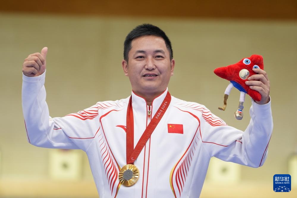 當日,在巴黎殘奧會射擊混合50米手槍P4-SH1級決賽中,中國選手楊超奪得金牌。