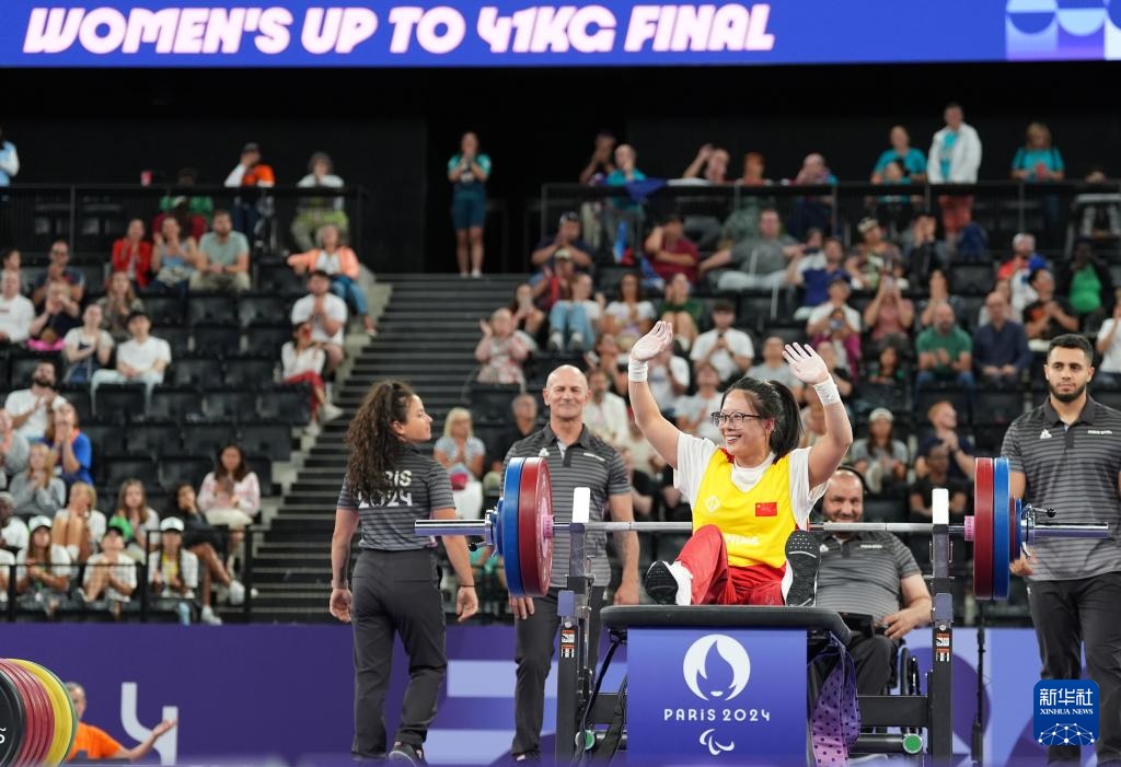 當日,在巴黎殘奧會舉重女子41公斤級比賽中,中國選手崔哲以119公斤的成績奪得冠軍。