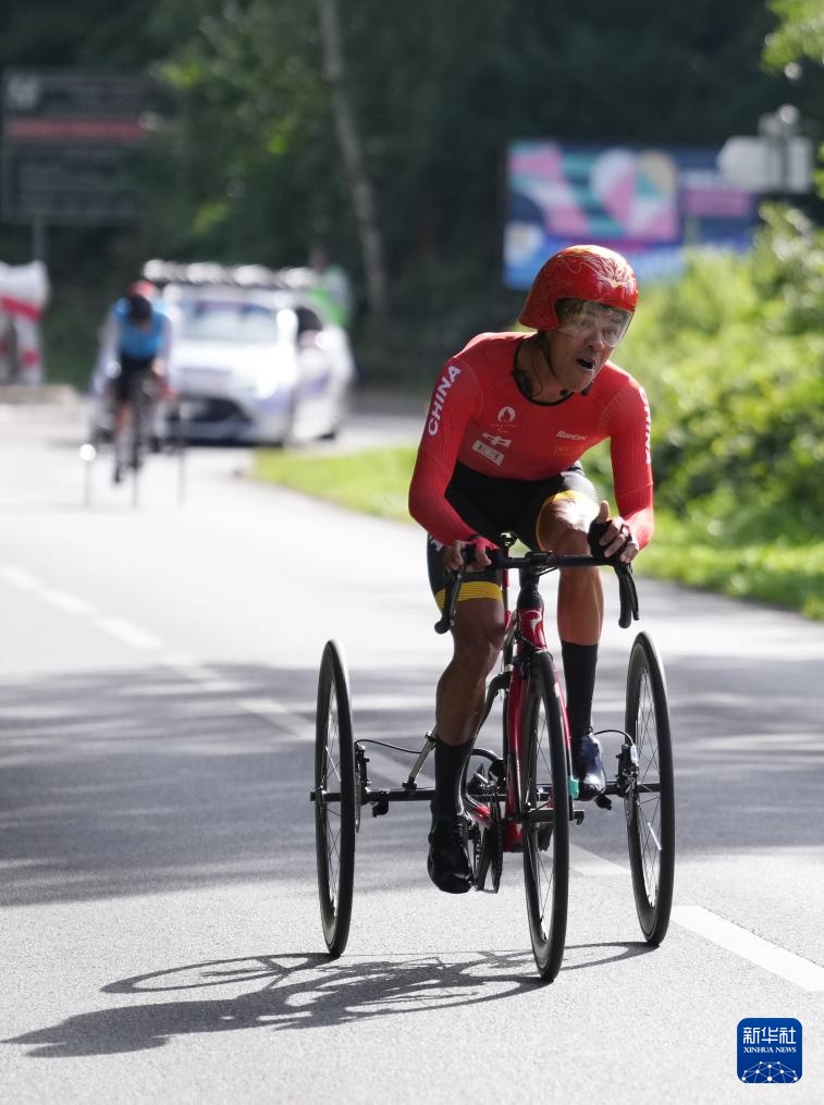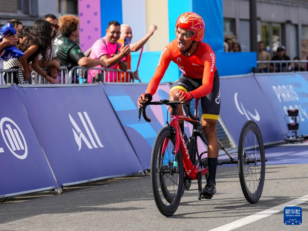 當日,在巴黎殘奧會公路自行車男子個人計時賽T1-2級比賽中,中國選手陳健新以21分35秒78的成績奪得冠軍。