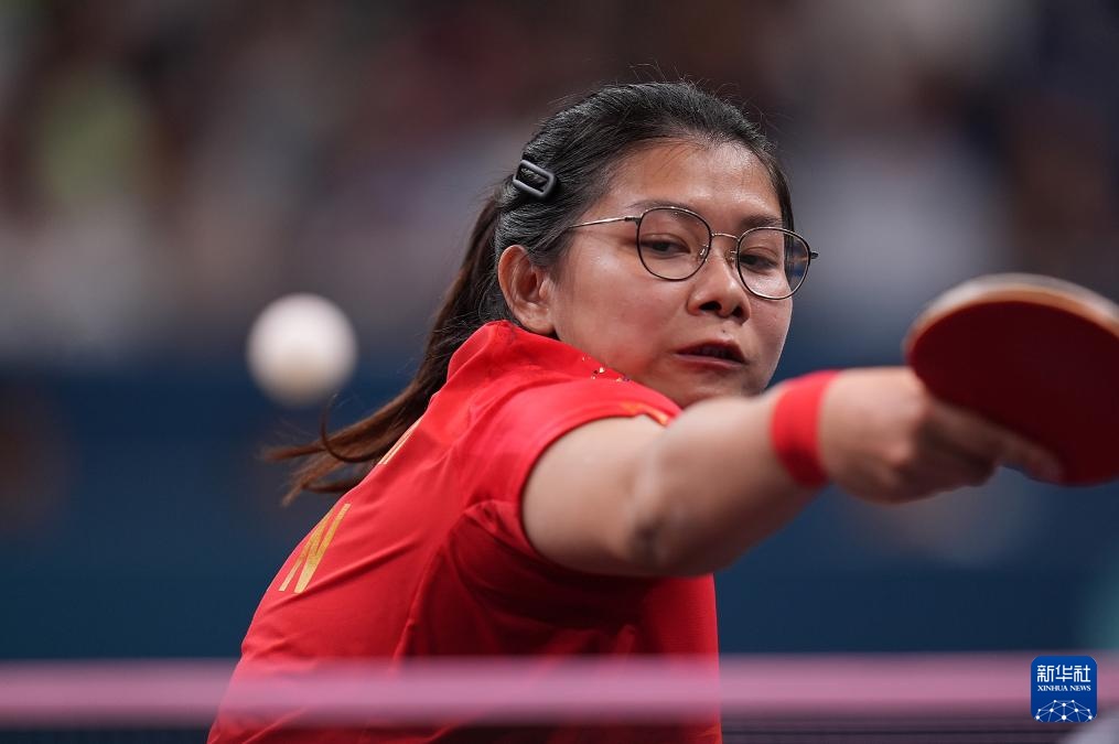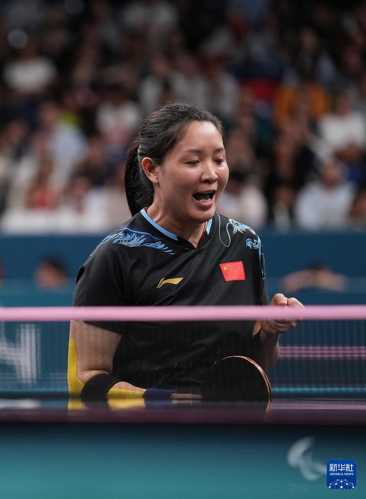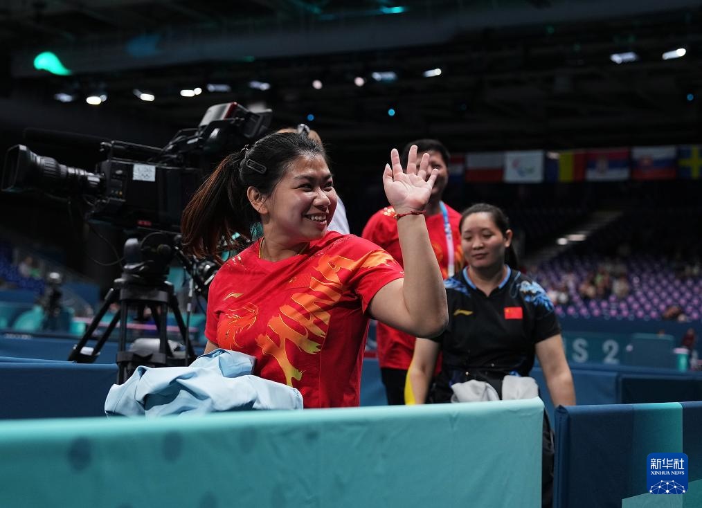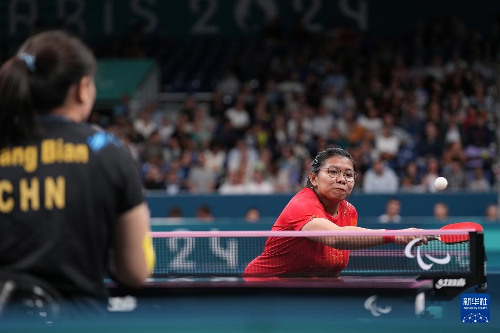 當(dāng)日,在巴黎殘奧會乒乓球女子單打5級決賽中,中國選手張變3比1戰(zhàn)勝隊友潘嘉敏,獲得冠軍。