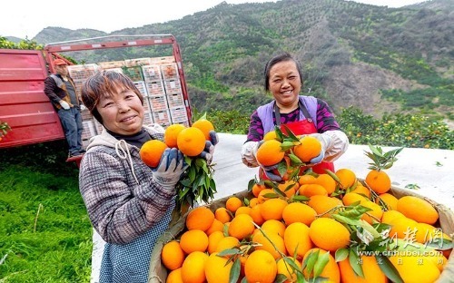 運輸臍橙的貨車行駛在施工便道上。湖北交投供圖