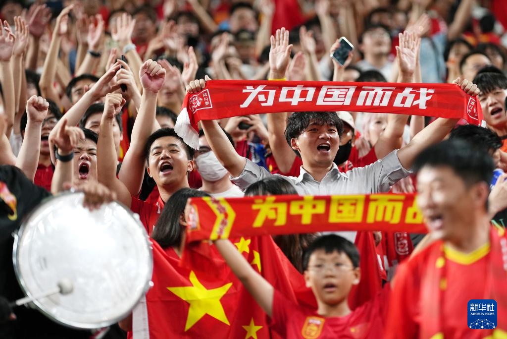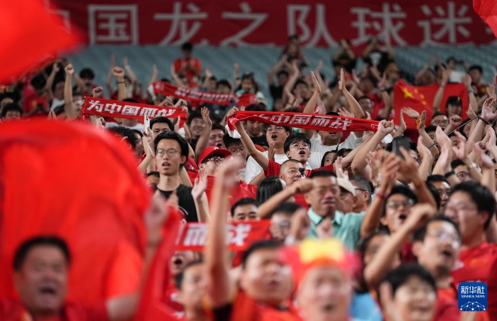 9月5日,中國隊(duì)球迷在比賽前加油助威。新華社記者 張笑宇 攝