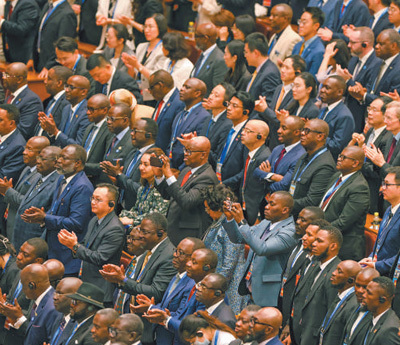 “經過近70年的辛勤耕耘,中非關系正處于歷史最好時期。面向未來,我提議,將中國同所有非洲建交國的雙邊關系提升到戰略關系層面,將中非關系整體定位提升至新時代全天候中非命運共同體!”習近平主席的講話贏得現場嘉賓陣陣掌聲。