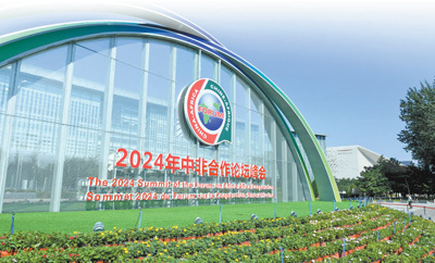 國家會議中心外的2024年中非合作論壇北京峰會標識。 新華社記者 任 超攝 |