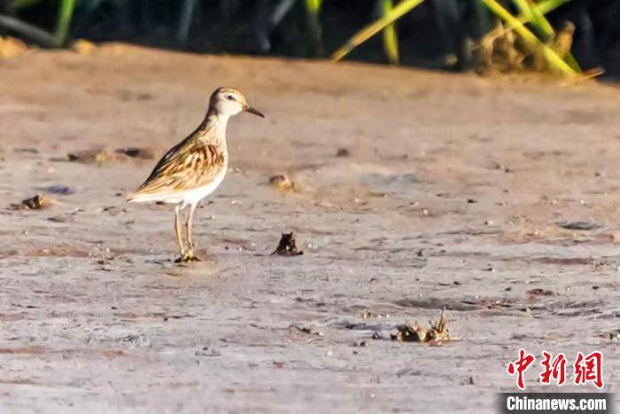 據神農架國家公園管理局5日消息,監測人員近日在大九湖濕地記錄到兩只偏灰褐體色的小型涉禽,經專家鑒定為長趾濱鷸。經與歷史數據和鳥類名錄對比,該水鳥此前未曾在神農架有過記錄,此次發現為神農架鳥類新記錄。