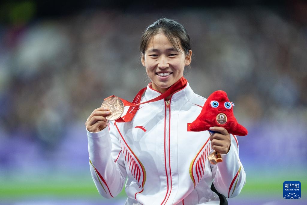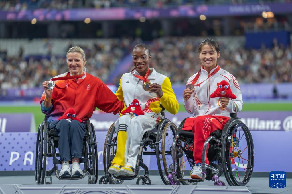 當(dāng)日,在巴黎殘奧會田徑女子400米T54級決賽中,中國選手周召倩以54秒01的成績獲得銅牌。