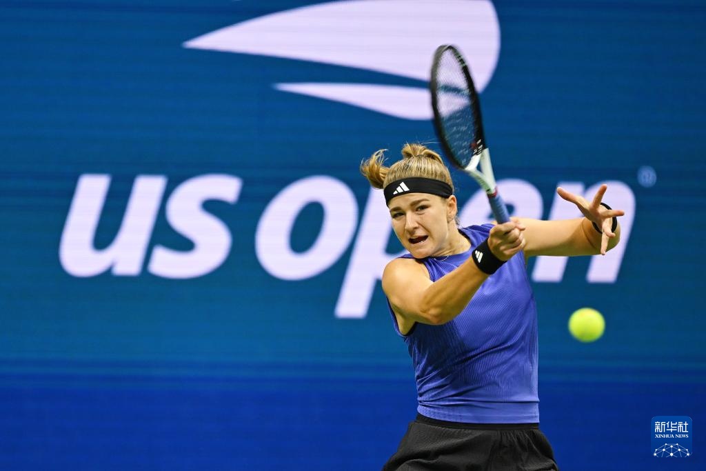 9月5日,穆霍娃在比賽中回球。新華社記者 李睿 攝