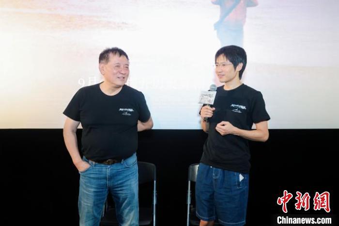 導演方勵與韓寒出席上海路演。(主辦方供圖)