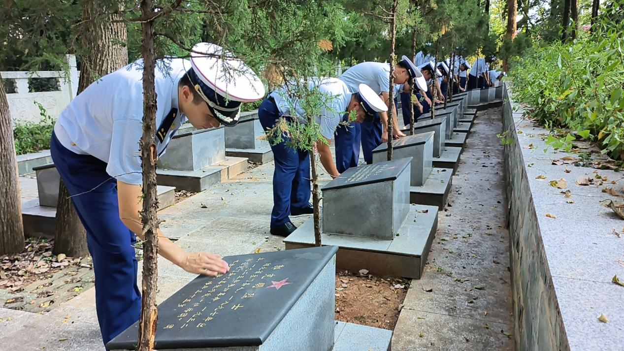 面對陵園內的革命烈士紀念塔,消防救援人員堅定高舉右手,洪亮的聲音、鏗鏘的誓言響徹在烈士紀念園上空久久回蕩;面對先烈們的墓碑,他們輕輕拂去上面的樹葉,在心中表達著自己的敬仰之情,更加堅定心中的理想信念。