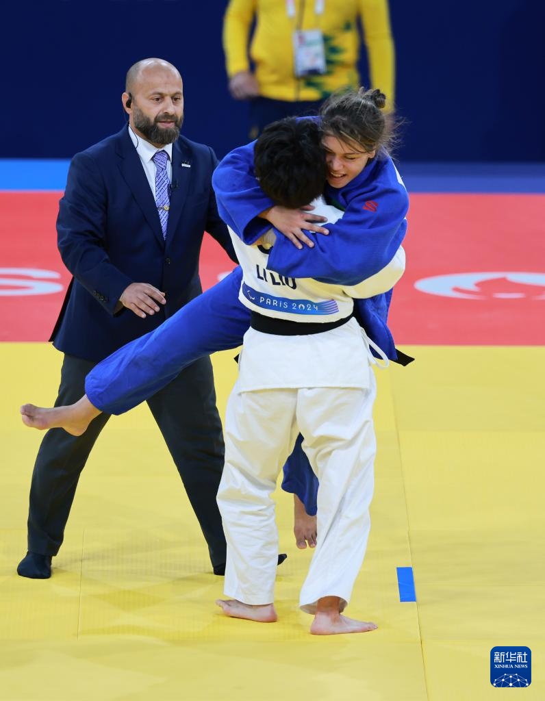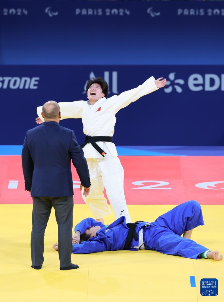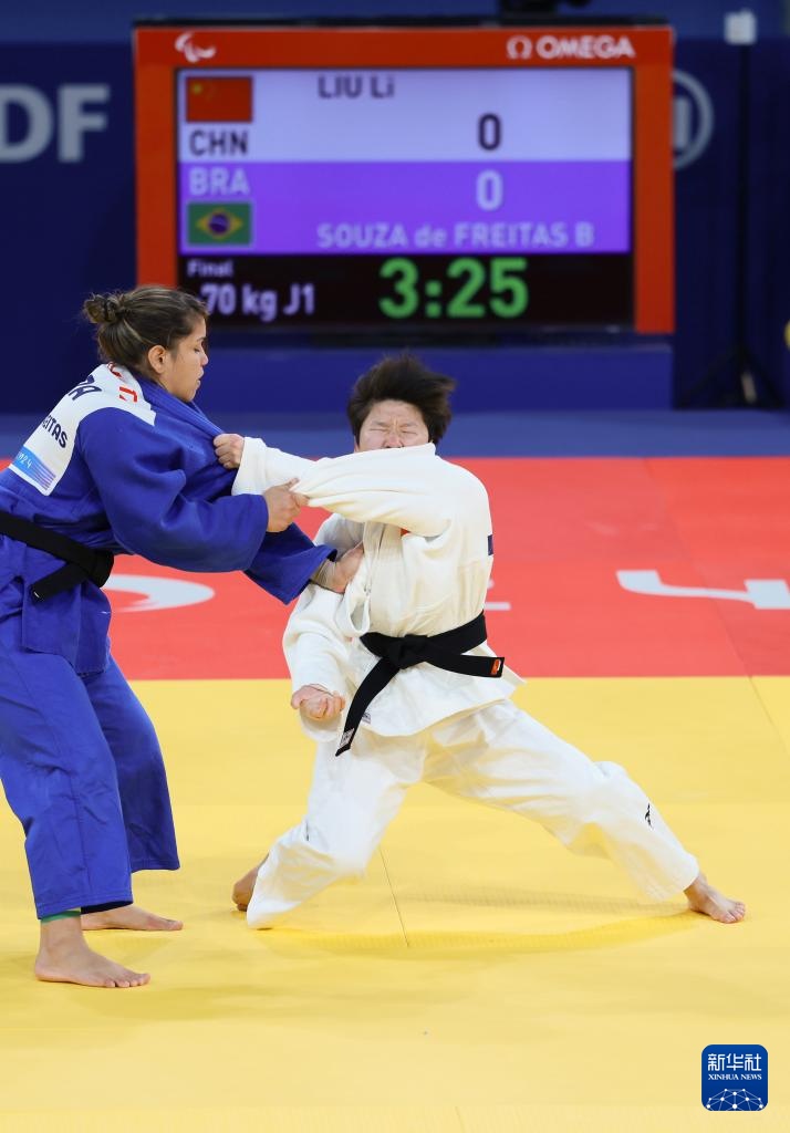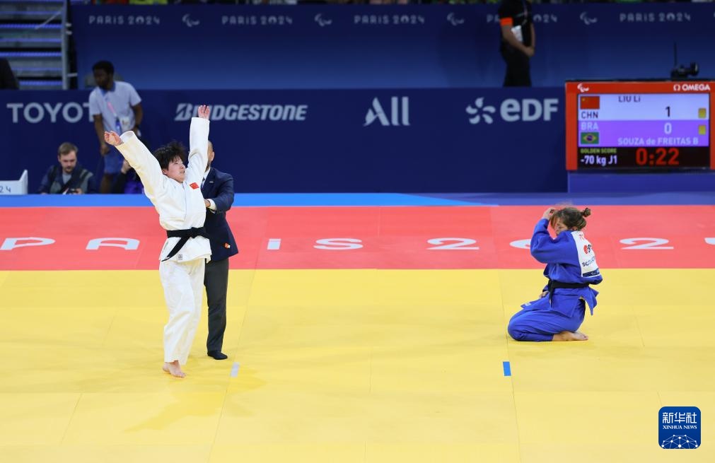 當(dāng)日,在巴黎殘奧會(huì)盲人柔道女子70公斤J1級(jí)決賽中,中國選手劉立1比0戰(zhàn)勝巴西選手德弗雷塔斯,獲得金牌。