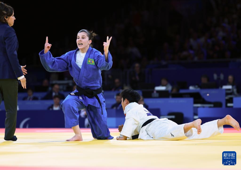 當日,在巴黎殘奧會盲人柔道女子70公斤J2級決賽中,中國選手王月0比10不敵巴西選手馬爾多納多,獲得銀牌。