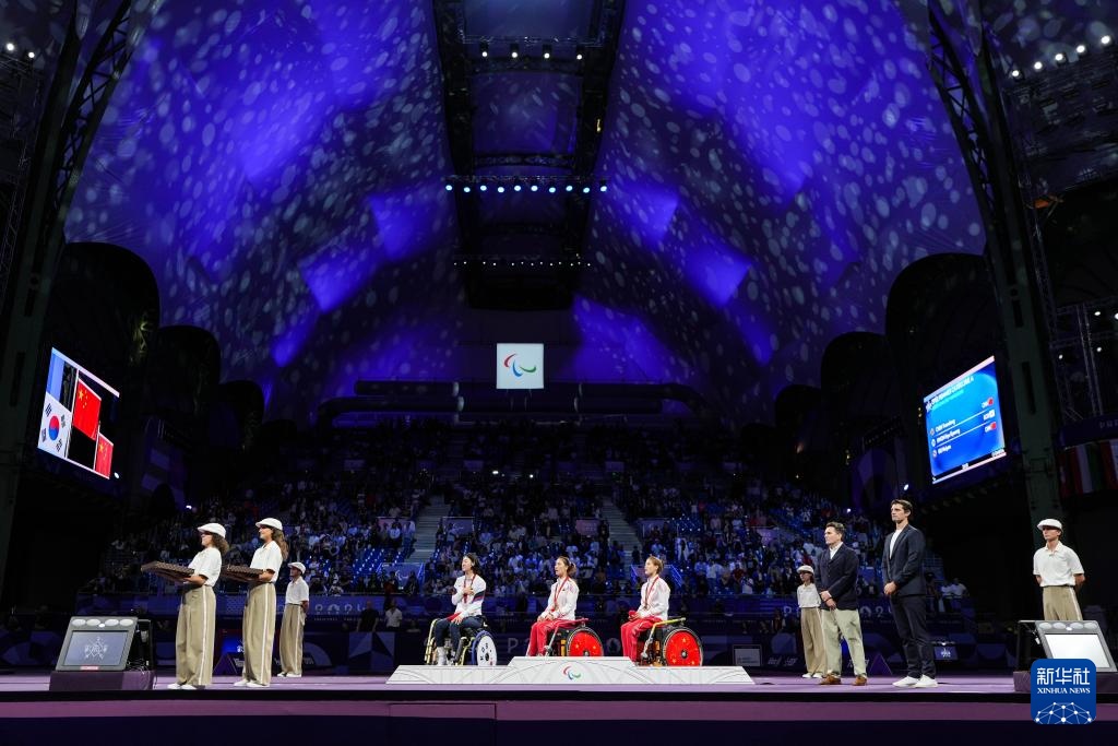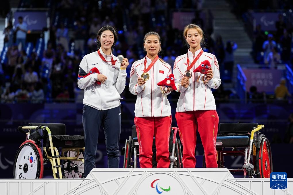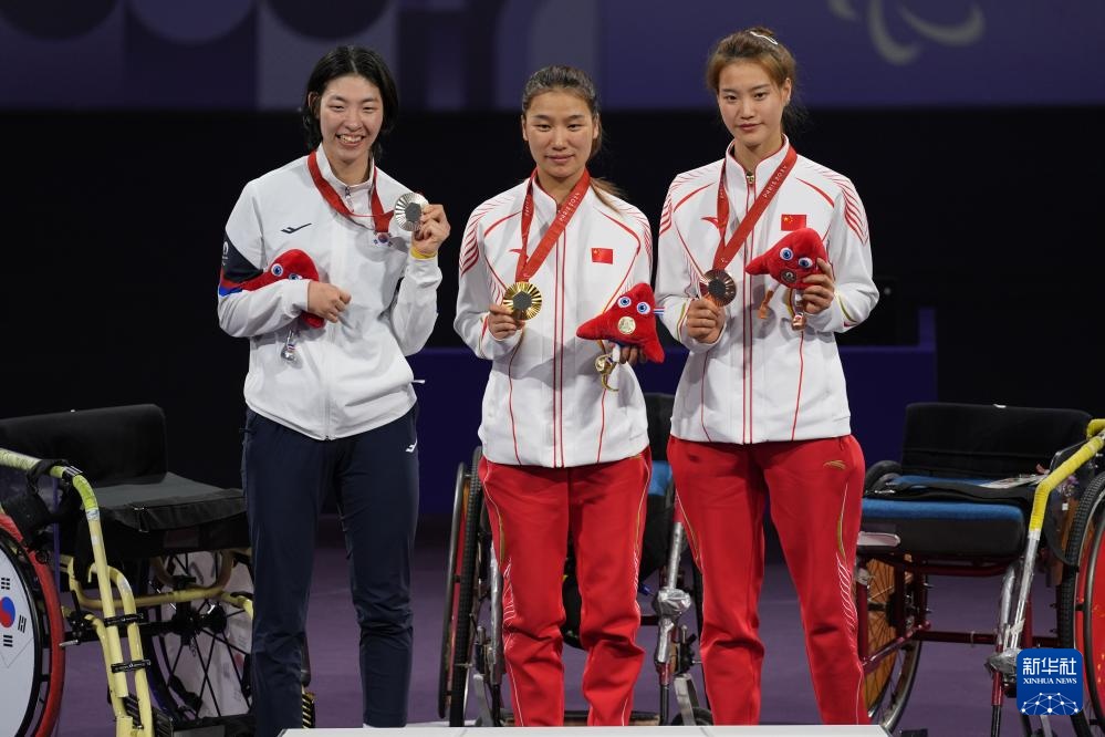 這是9月6日拍攝的巴黎殘奧會女子個人重劍A級頒獎儀式。