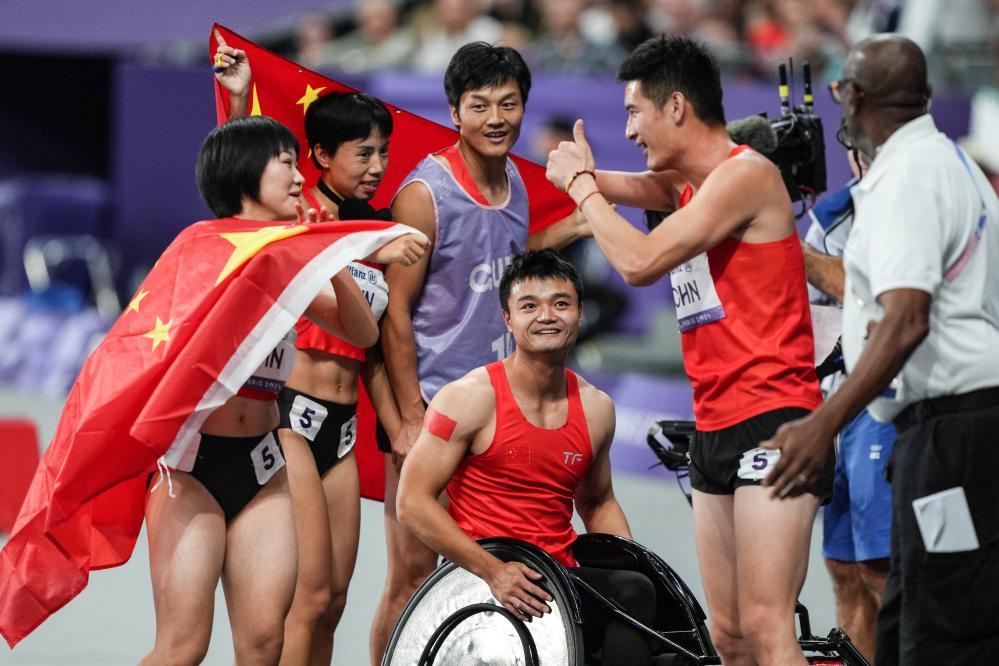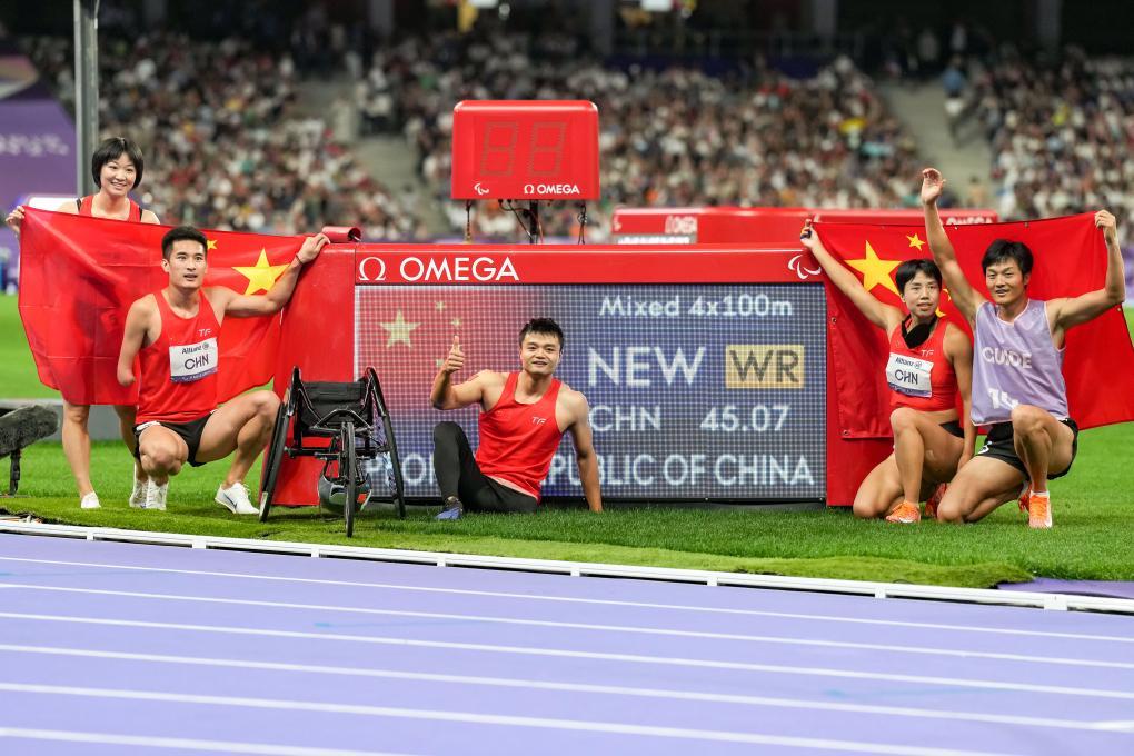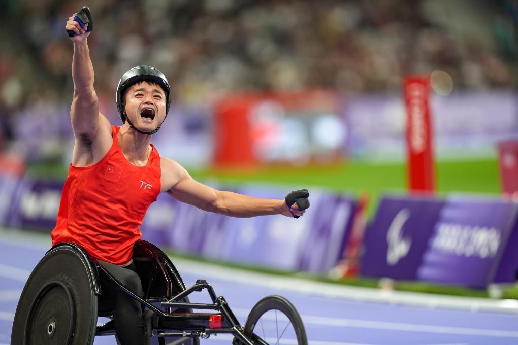 伴隨著法蘭西體育場數(shù)萬人山呼海嘯般的吶喊,胡洋一騎絕塵,45秒07!中國隊如愿獲得了這塊巴黎殘奧會田徑賽場上含金量極高的金牌,并刷新世界紀(jì)錄。