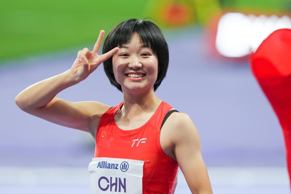 9月6日,中國隊選手文曉燕在賽后慶祝。新華社記者 彭子洋 攝