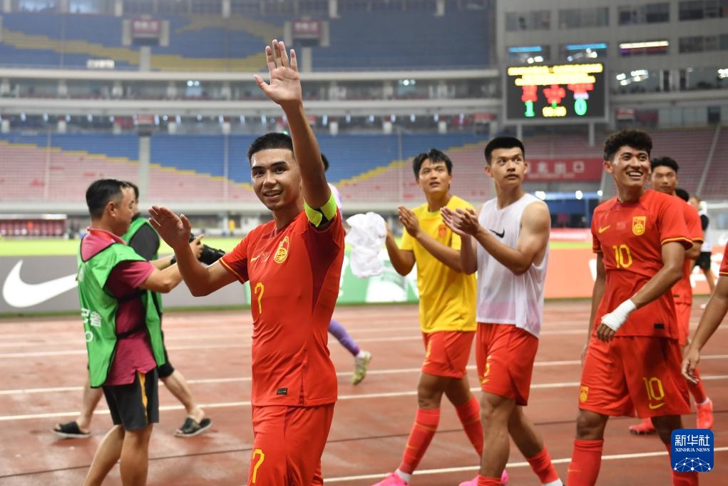 9月7日,中國隊球員艾菲爾丁·艾斯卡爾(前左一)在比賽后向球迷致謝。