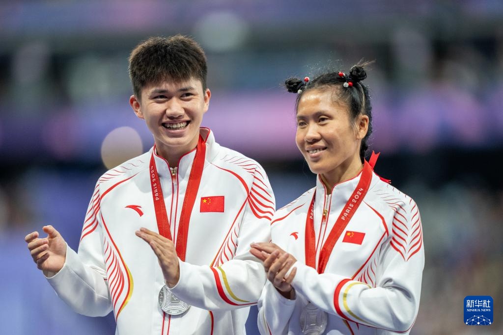 9月7日,中國選手劉翠青(右)和領跑員陳圣明在頒獎儀式上。