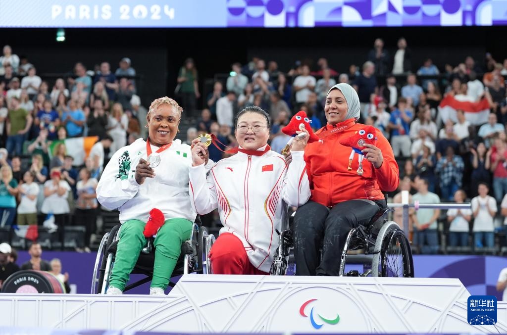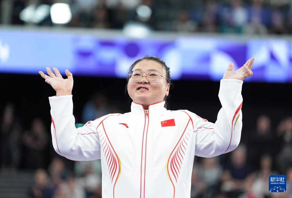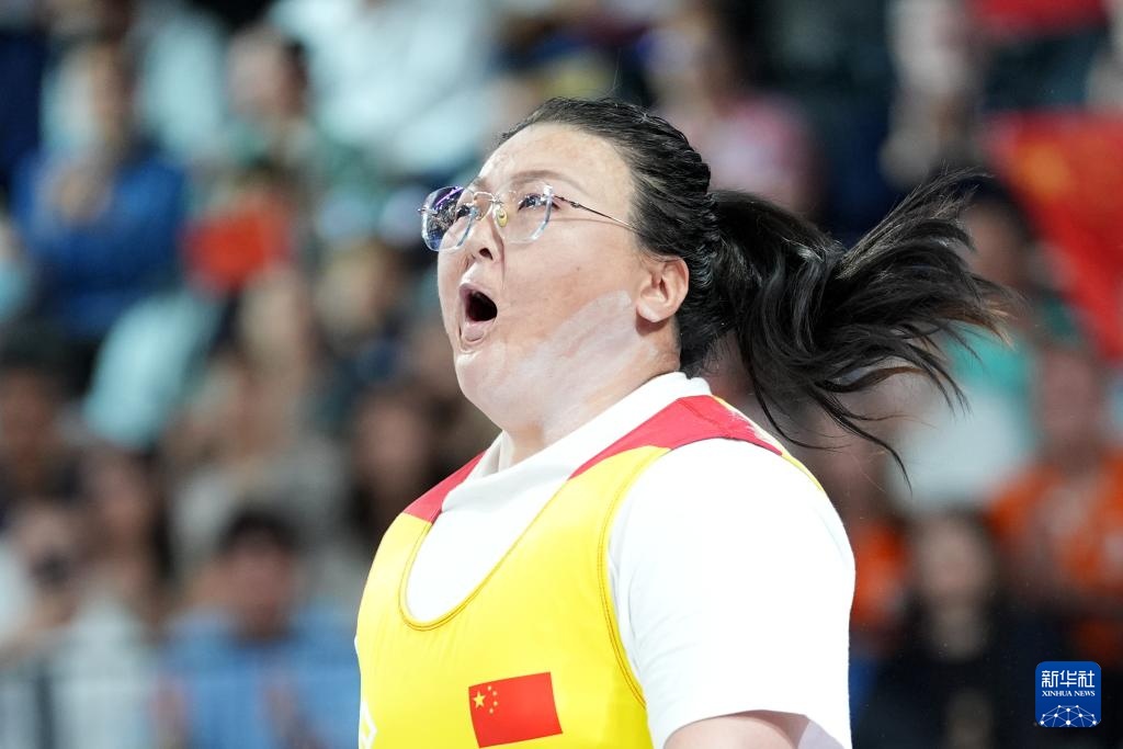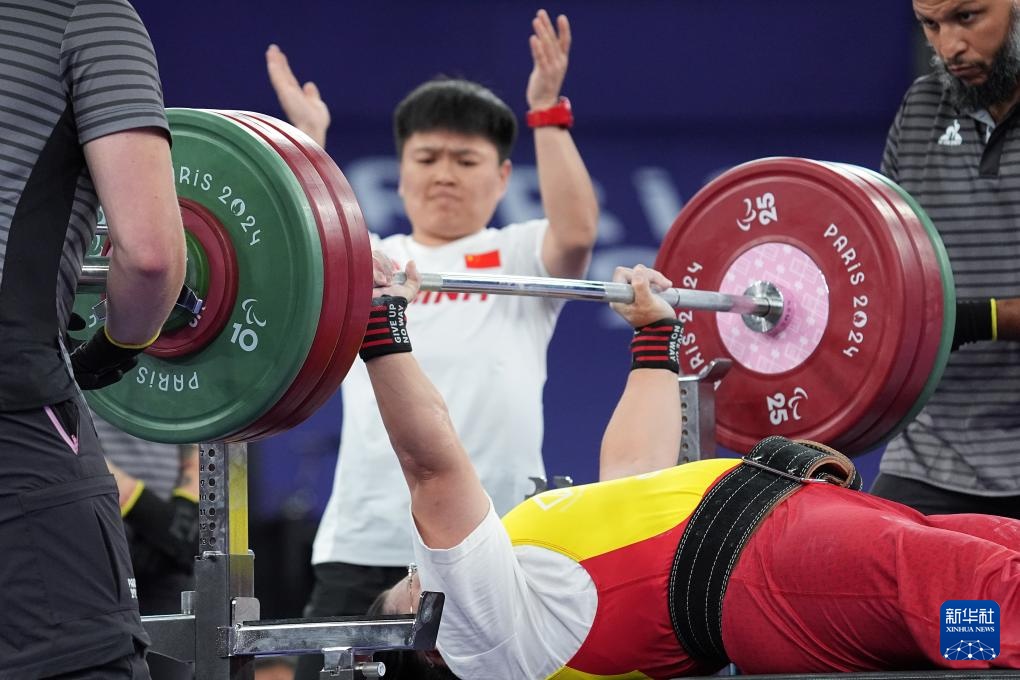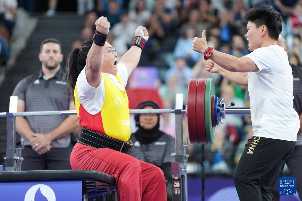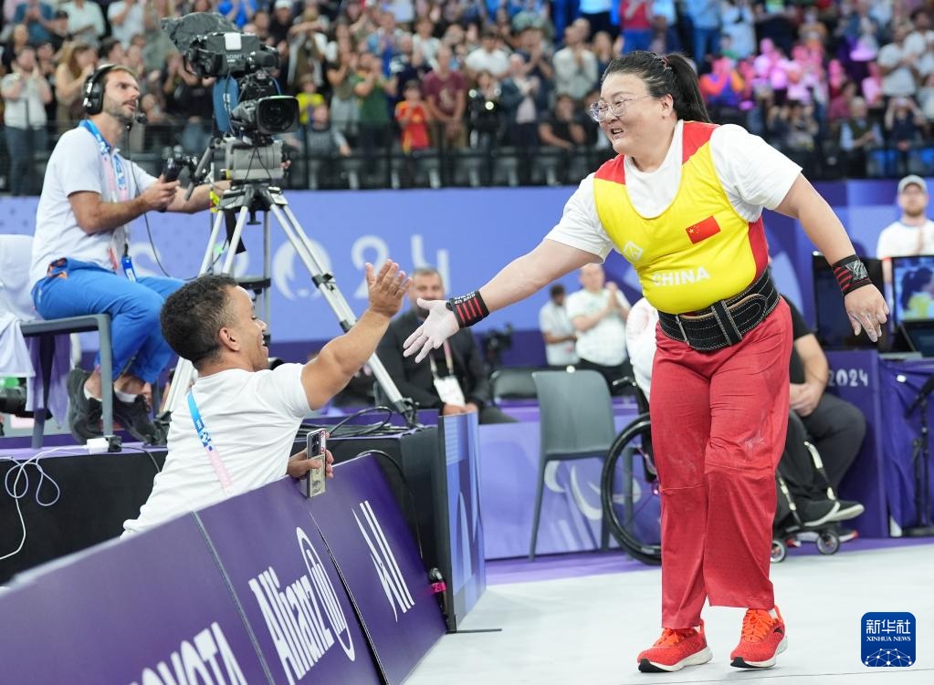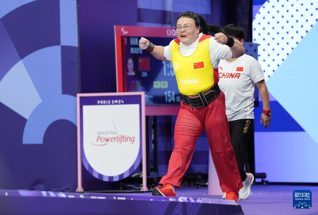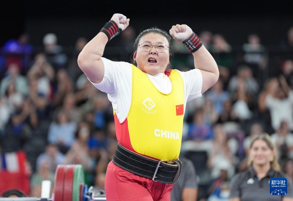 當日,在巴黎殘奧會舉重項目女子79公斤級決賽中,中國選手韓淼雨奪冠。