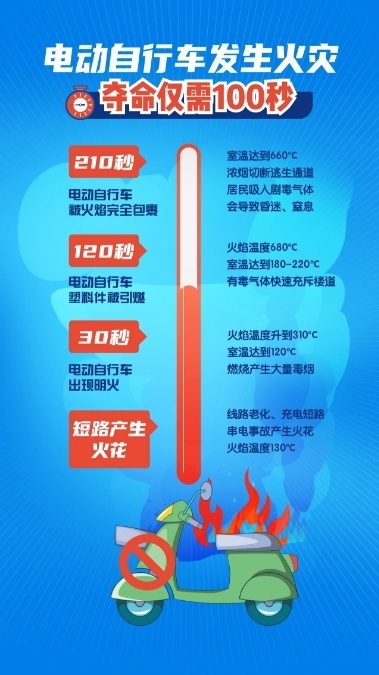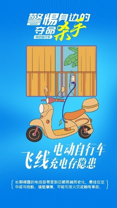 2024年6月26日,福建福州市倉山區建新鎮一自建房因租客在民房天井內為電動自行車“飛線”充電引發火災。最終,起火電動自行車車主因違規停放充電行為,被公安機關依法行政拘留10日;鄭姓房東因未有效履行電動自行車安全管理責任,也被公安機關依法行政拘留10日。