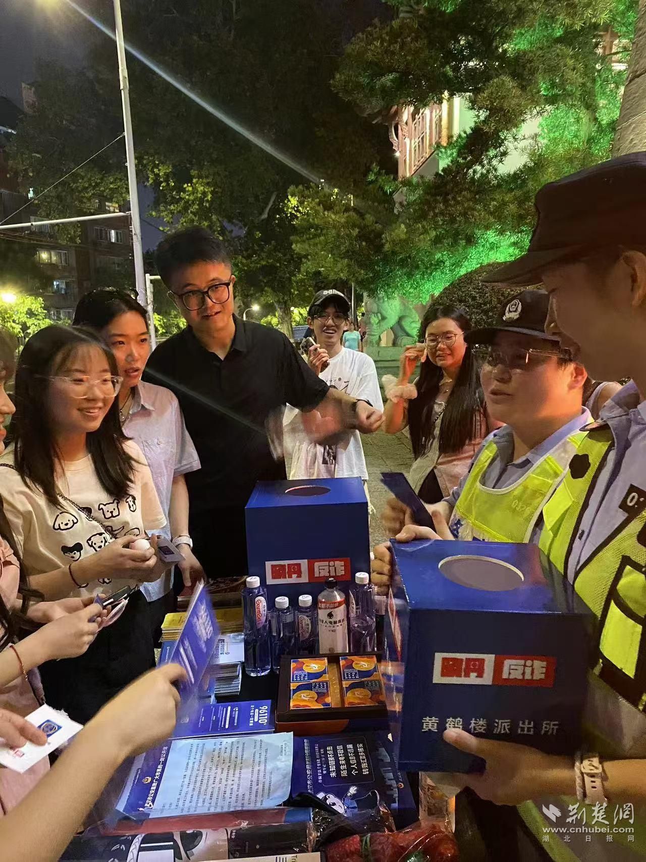 在黃鶴樓公園南門“天下江山第一樓”處,“曉丹反詐”宣防隊員們通過發(fā)放宣傳單頁、現(xiàn)場講解等形式,向游客介紹了電信網(wǎng)絡(luò)詐騙的常見手法和防范要點。通訊員供圖