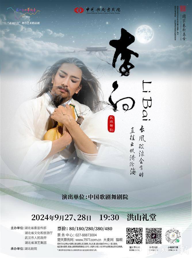 湖北日報訊(記者王晶)作為國風舞劇的經典力作,舞劇《李白》將來到長江文化藝術季“靈動長江”舞臺藝術精品展舞臺,于9月27、28日在洪山禮堂上演。