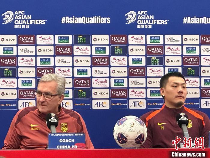 9日,中國男足主教練伊萬科維奇與球員王大雷出席賽前新聞發布會。中新社記者 邢翀 攝