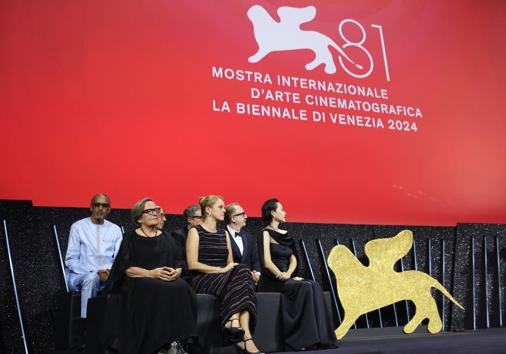 9月7日,在意大利威尼斯,第81屆威尼斯國際電影節主競賽單元評委參加閉幕式。新華社記者 李京 攝