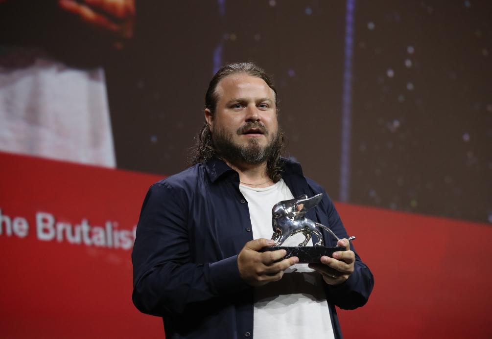9月7日,在意大利威尼斯,憑借影片《野獸派》獲得最佳導演獎的美國導演布雷迪·科比特與獎杯合影。新華社記者 李京 攝