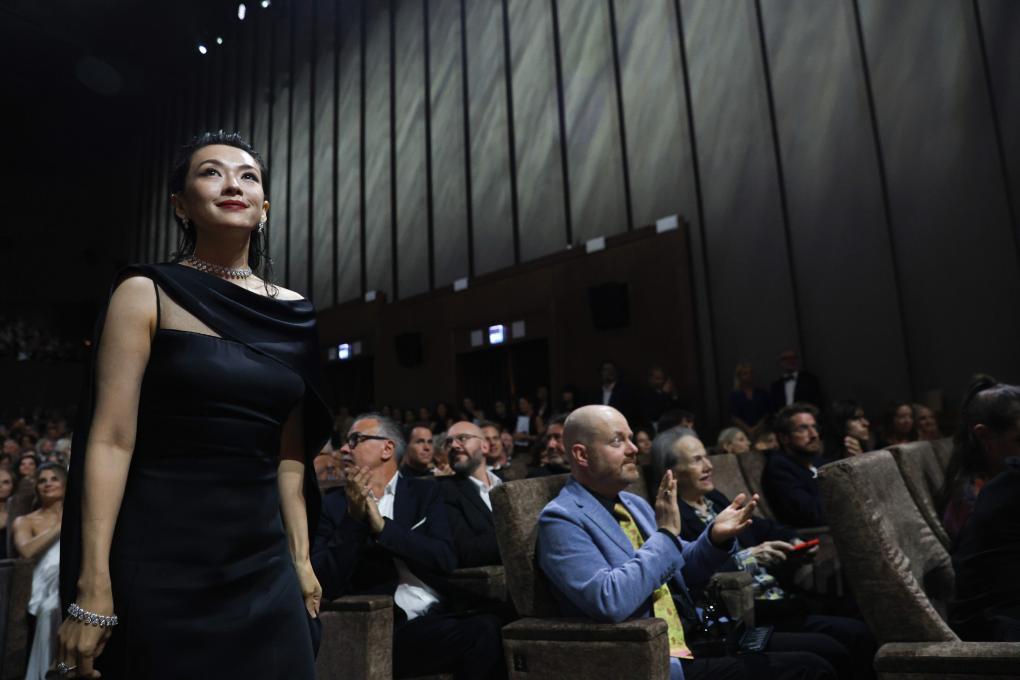 9月7日,在意大利威尼斯,第81屆威尼斯國際電影節主競賽單元評委章子怡(左)出席閉幕式。新華社記者 李京 攝