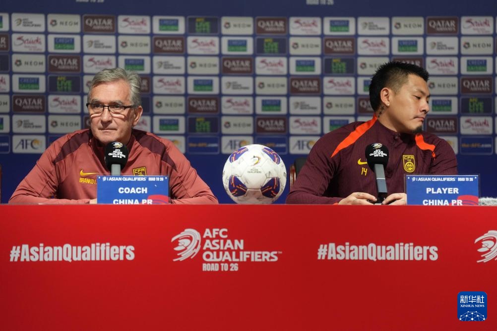 9月9日,中國隊(duì)主教練伊萬科維奇(前)在發(fā)布會(huì)上。新華社記者 潘昱龍 攝
