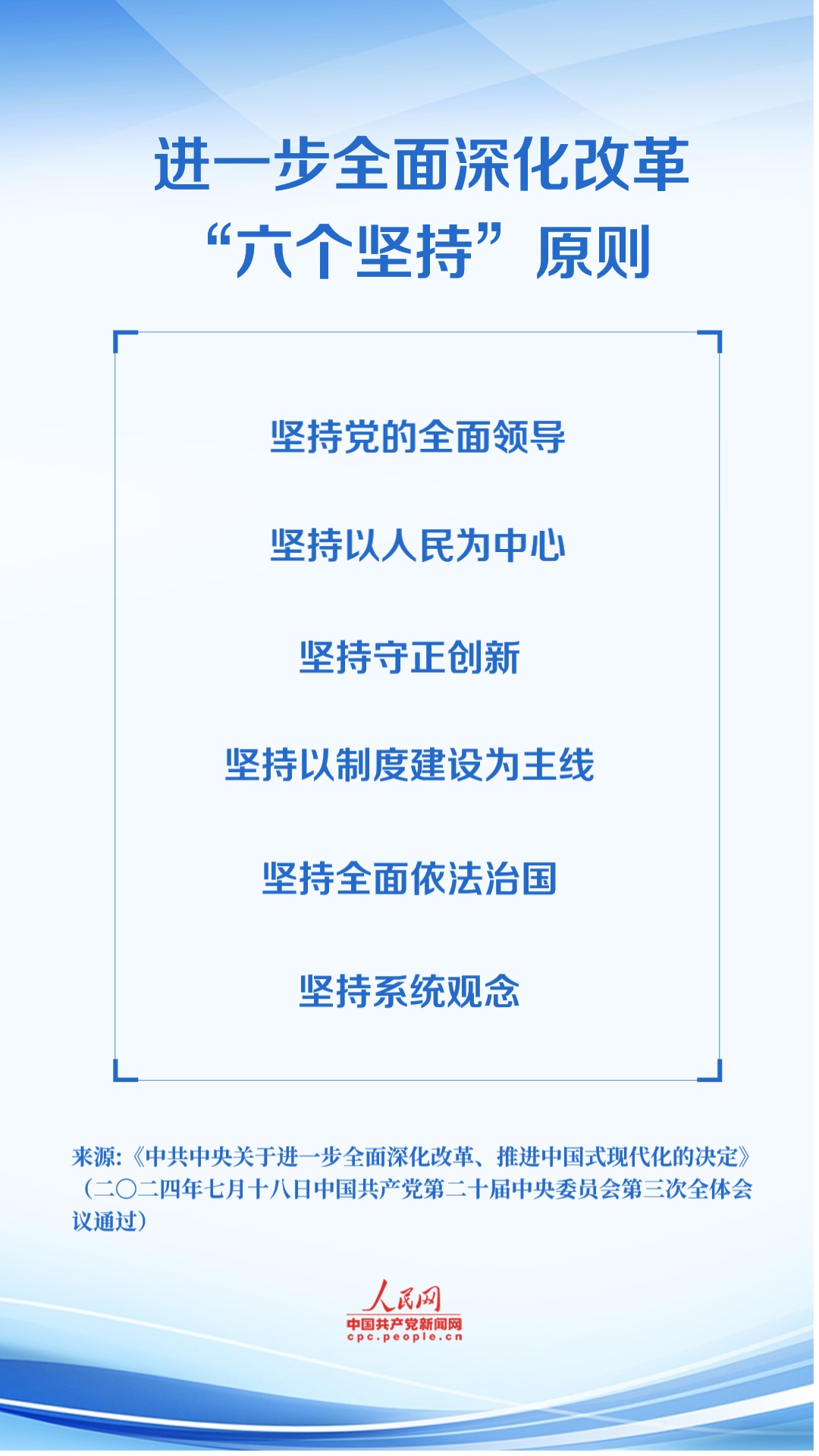 本期主題:黨的二十屆三中全會審議通過的《中共中央關于進一步全面深化改革、推進中國式現代化的決定》提出,進一步全面深化改革,必須貫徹好堅持黨的全面領導、堅持以人民為中心、堅持守正創新、堅持以制度建設為主線、堅持全面依法治國、堅持系統觀念等重大原則。這“六個堅持”重大原則,是對改革開放以來特別是新時代全面深化改革寶貴經驗的深刻總結和科學運用,充分彰顯了習近平新時代中國特色社會主義思想的世界觀方法論以及貫穿其中的立場觀點方法。