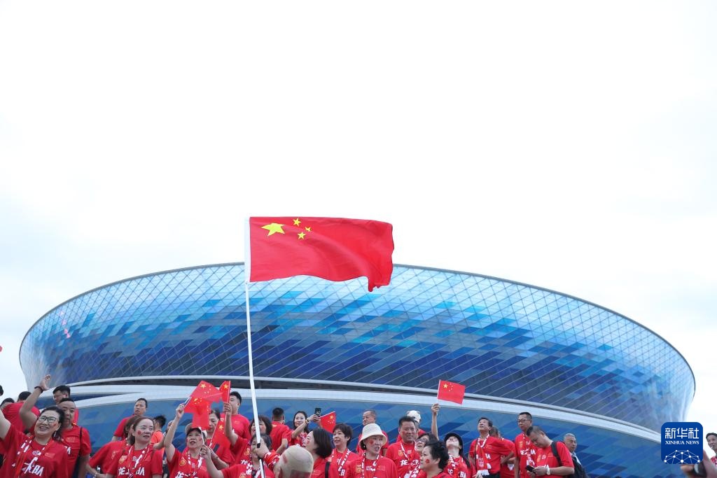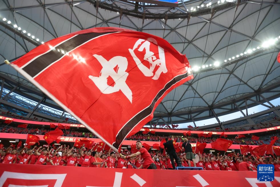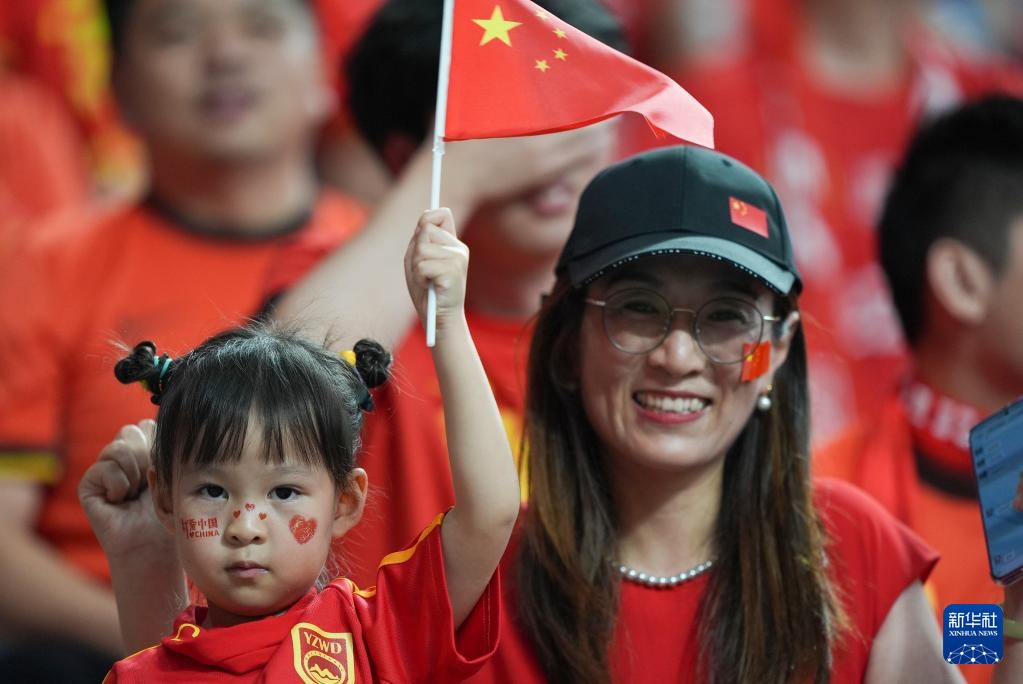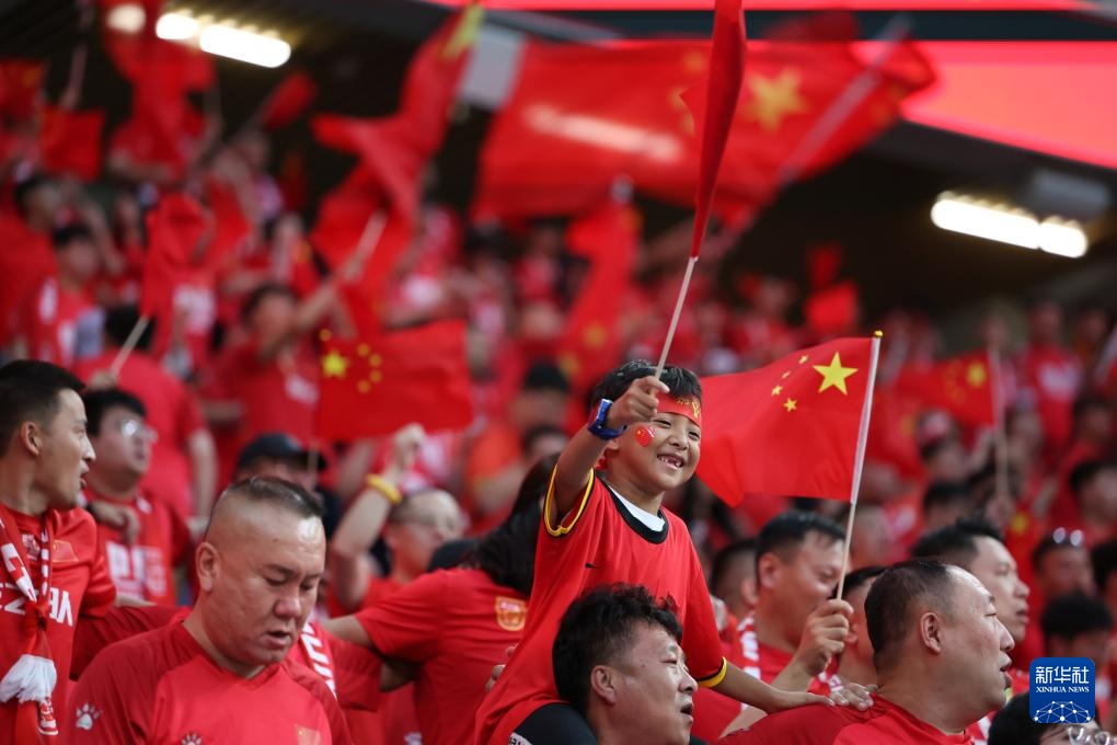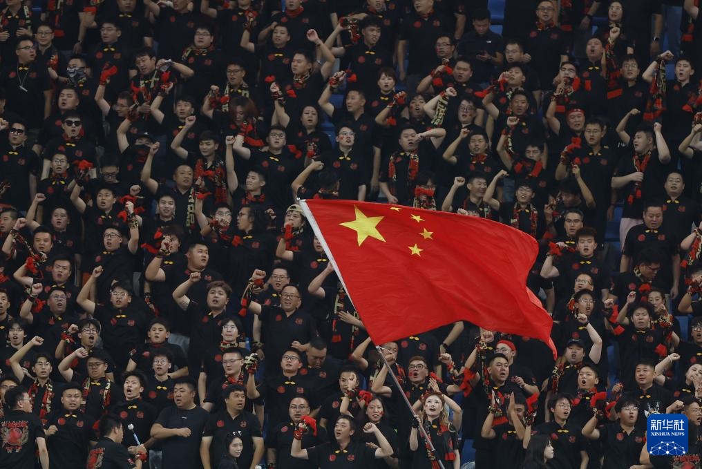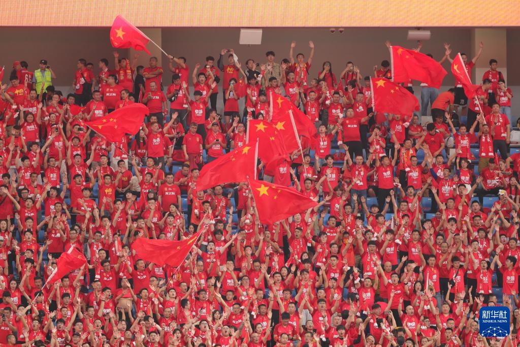 9月10日,中國隊球迷在比賽前揮舞國旗。