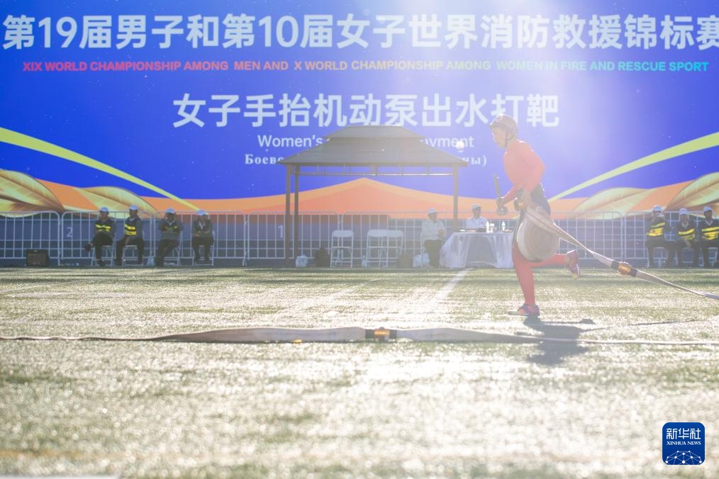當日,在第19屆男子和第10屆女子世界消防救援錦標賽女子手抬機動泵出水打靶比賽中,中國隊選手獲得冠軍。