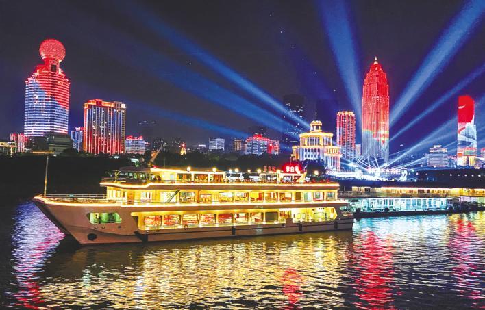不同于舞臺或場館演出,長江文化藝術節將開幕式設立于武漢長江江面,從長江大橋至長江二橋的江段成為長江文化藝術季開篇之作的舞臺。首次彩排,記者登上兩江盤龍號游船,感受武漢兩江四岸變身“大城華彩亮相、全民狂歡共慶”主舞臺。