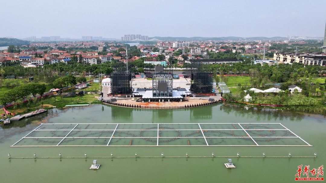 (第三屆湖南旅游發(fā)展大會(huì)主舞臺在酃湖公園搭建中。李希平攝)