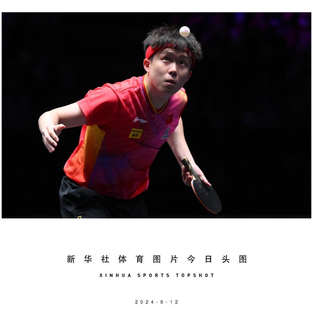 9月12日,王楚欽在比賽中發球。