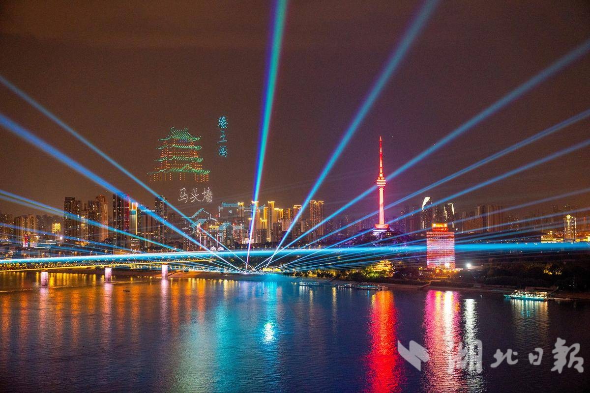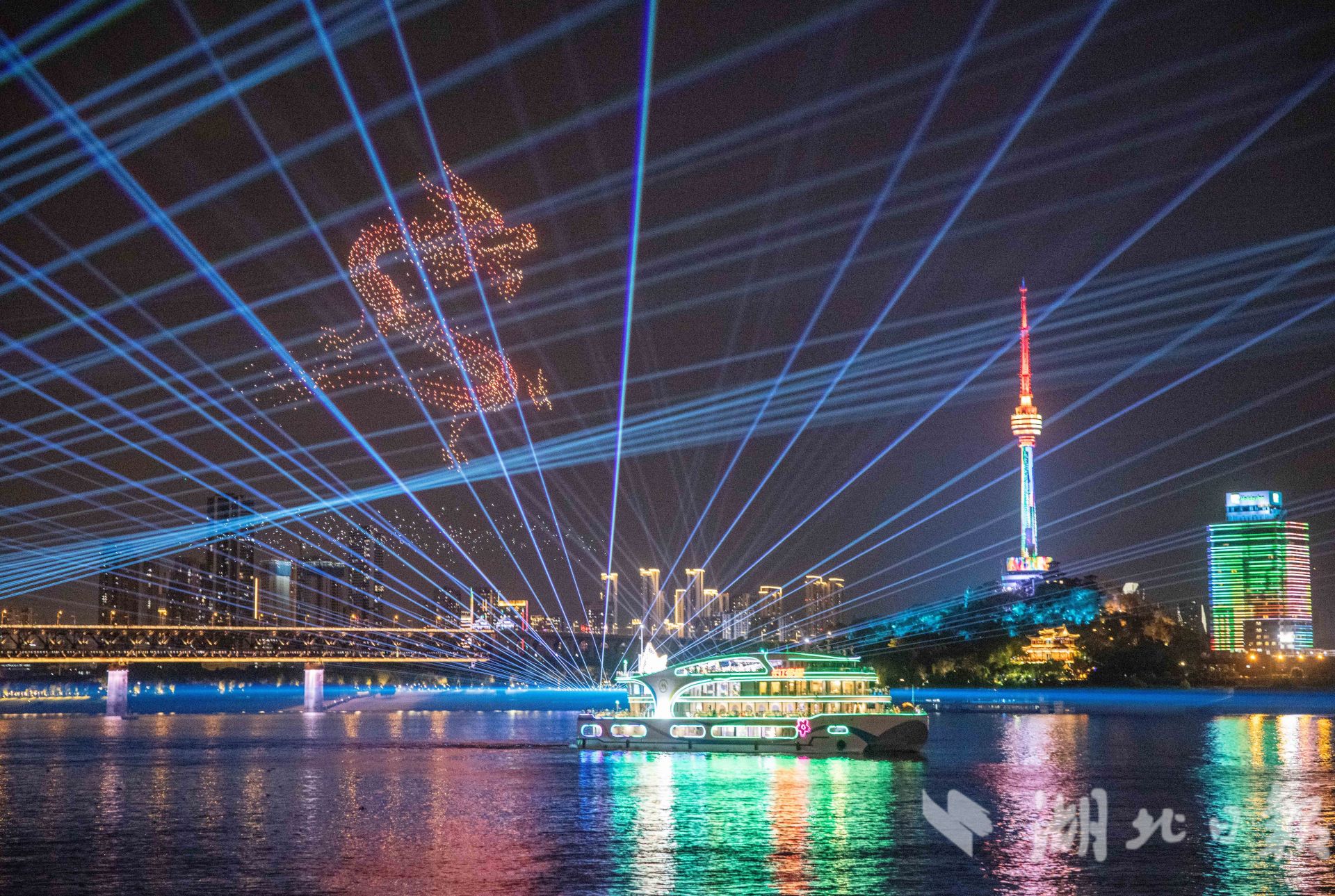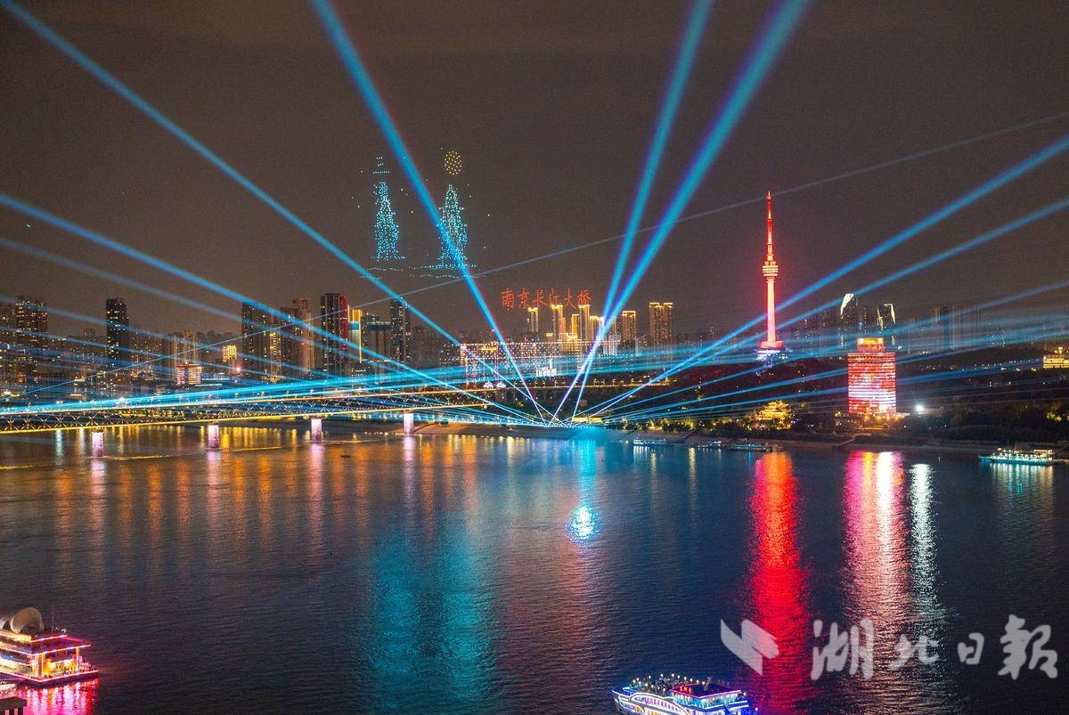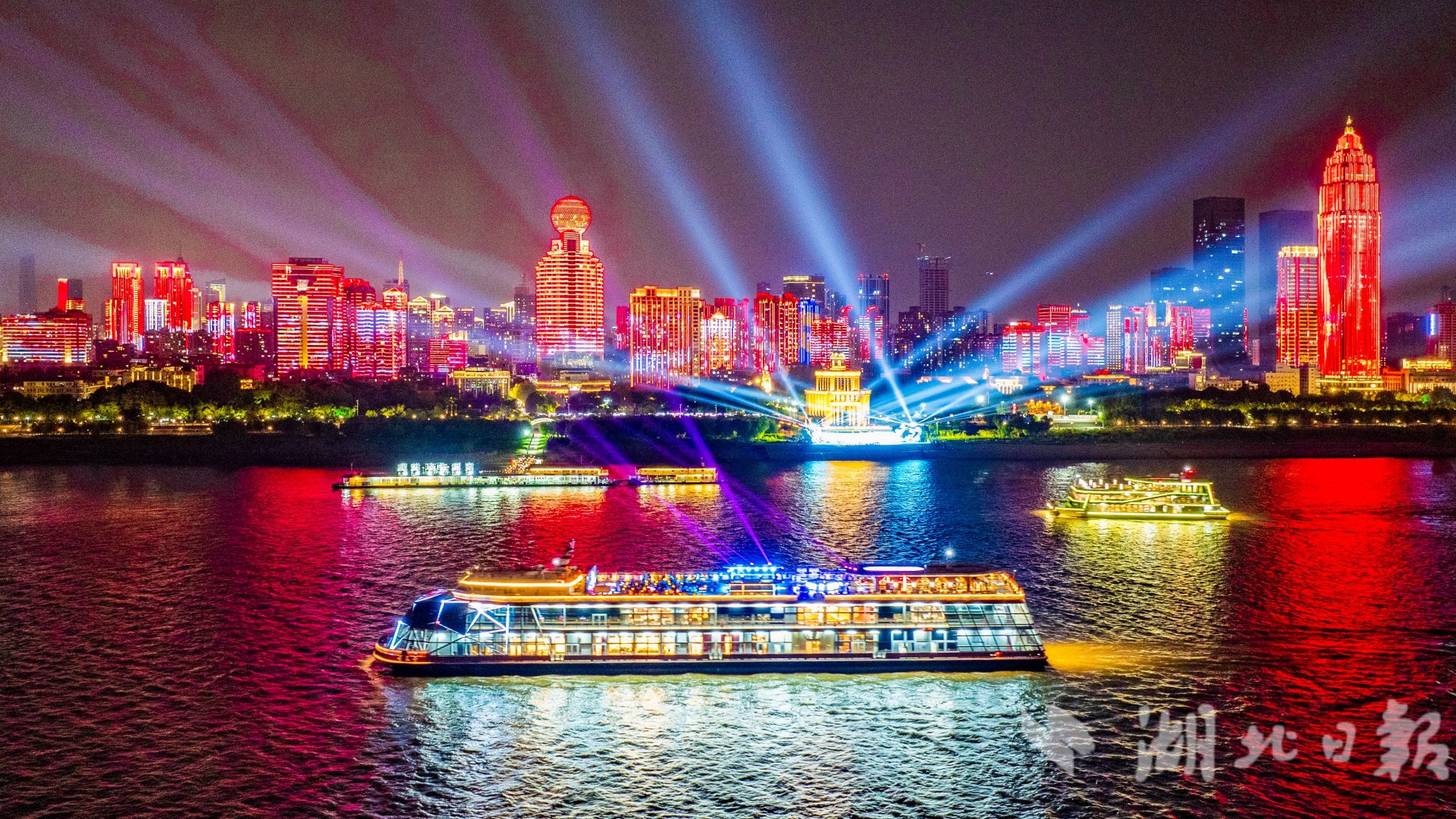 2024年9月14日晚,武漢兩江四岸燈火璀璨、光影交織,長江文化藝術季開幕式在武漢兩江四岸壯麗上演。(湖北日報全媒記者 何宇欣 攝)