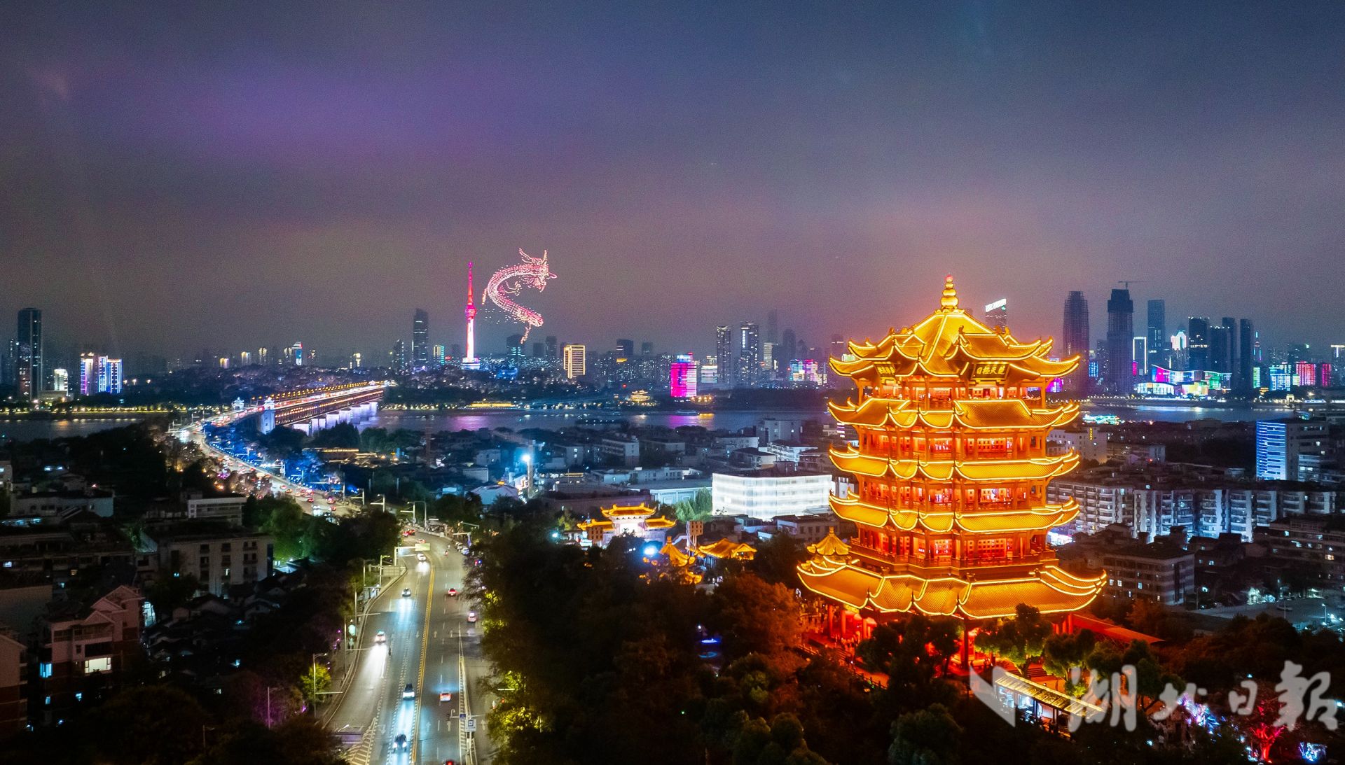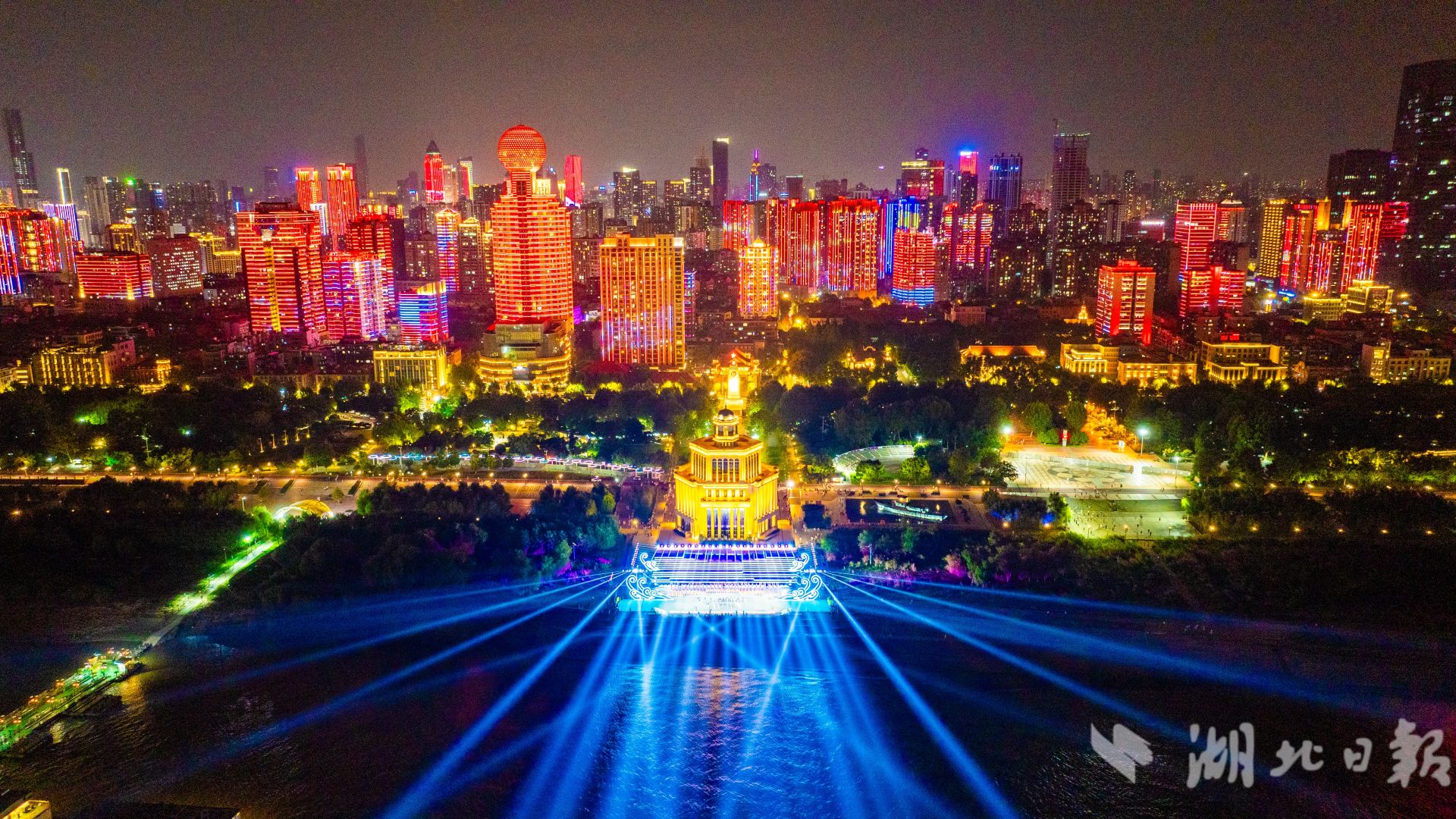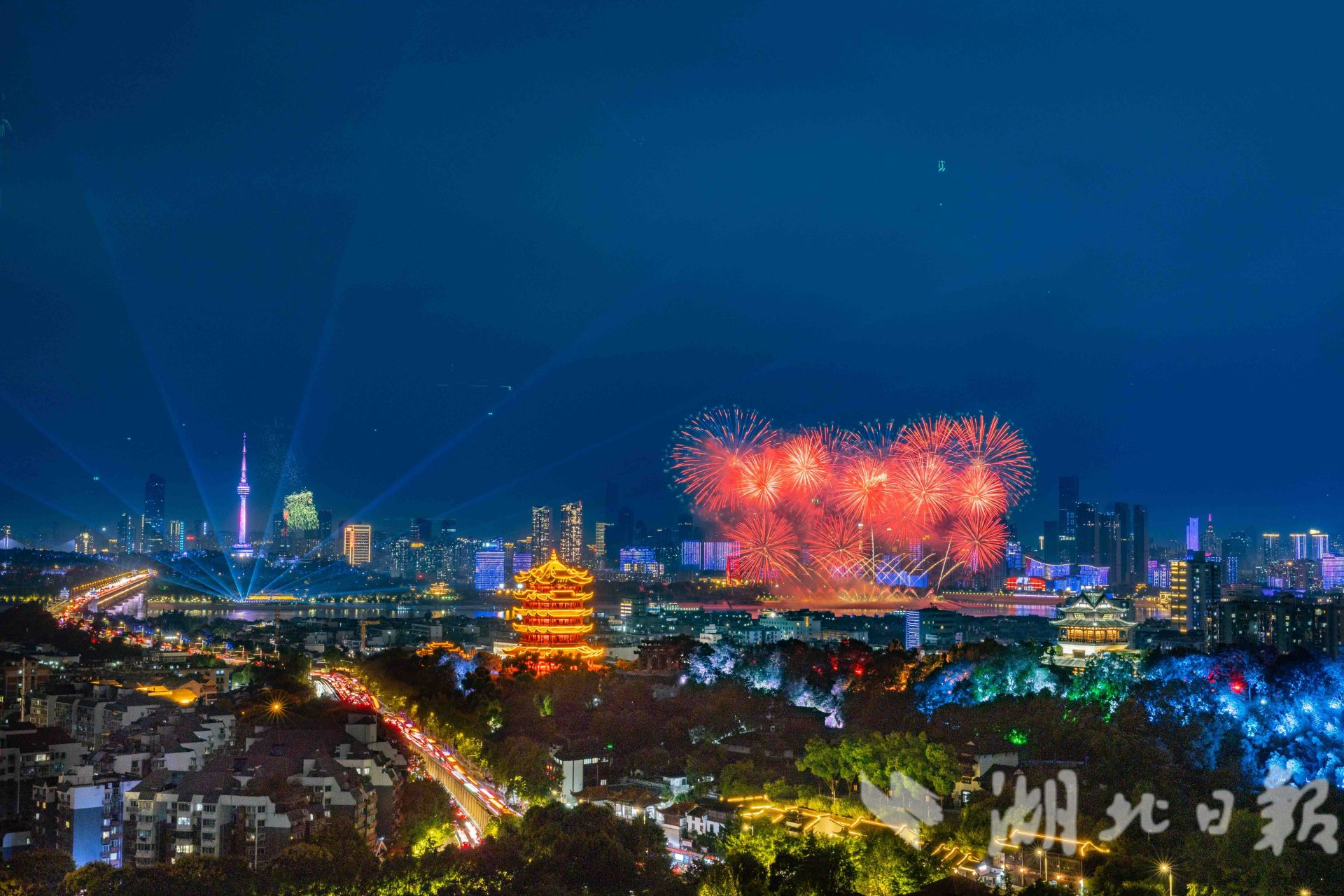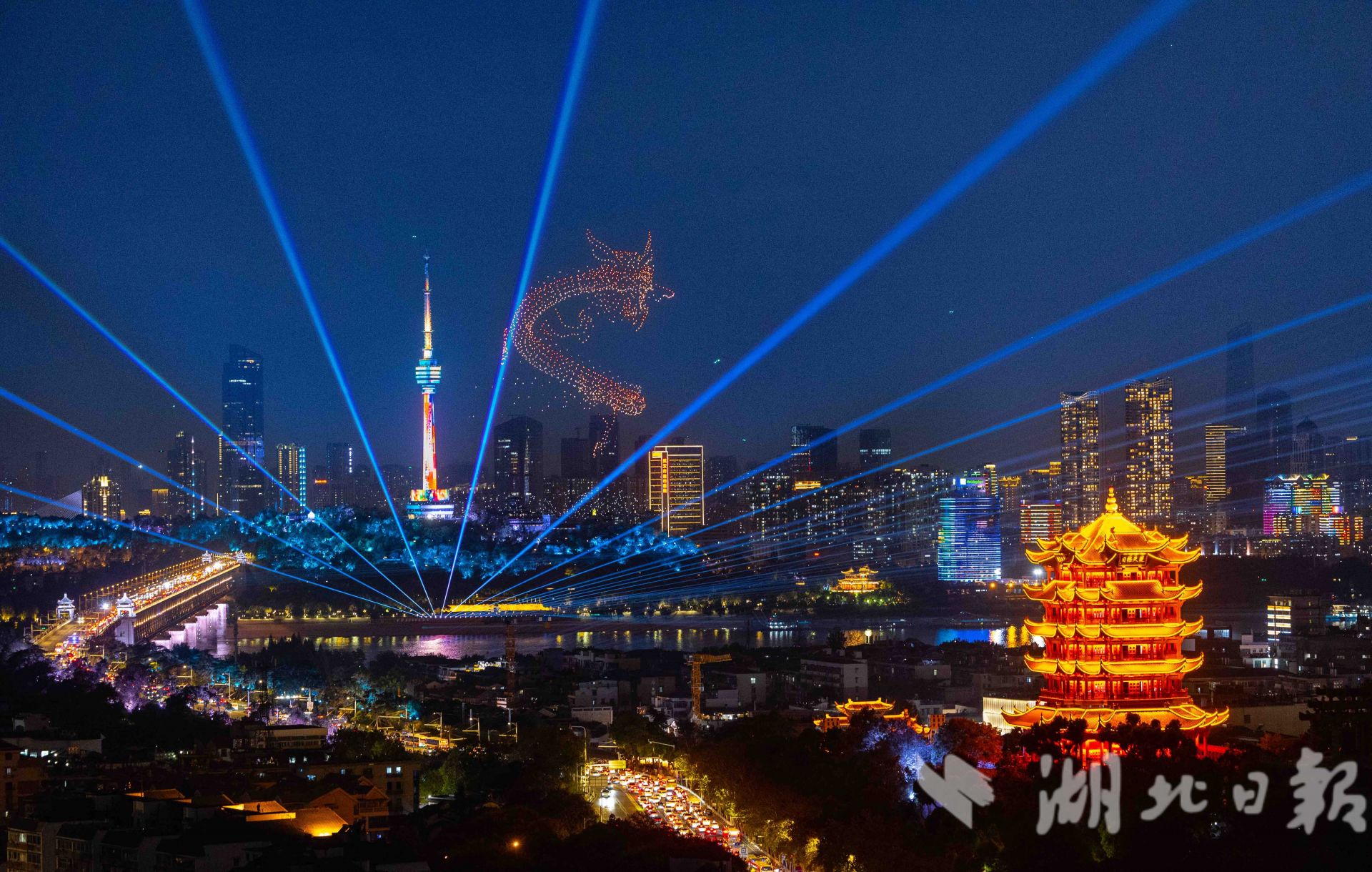 2024年9月14日晚,武漢兩江四岸燈火璀璨、光影交織,長江文化藝術季開幕式在武漢兩江四岸壯麗上演。(湖北日報全媒記者 何宇欣 攝)